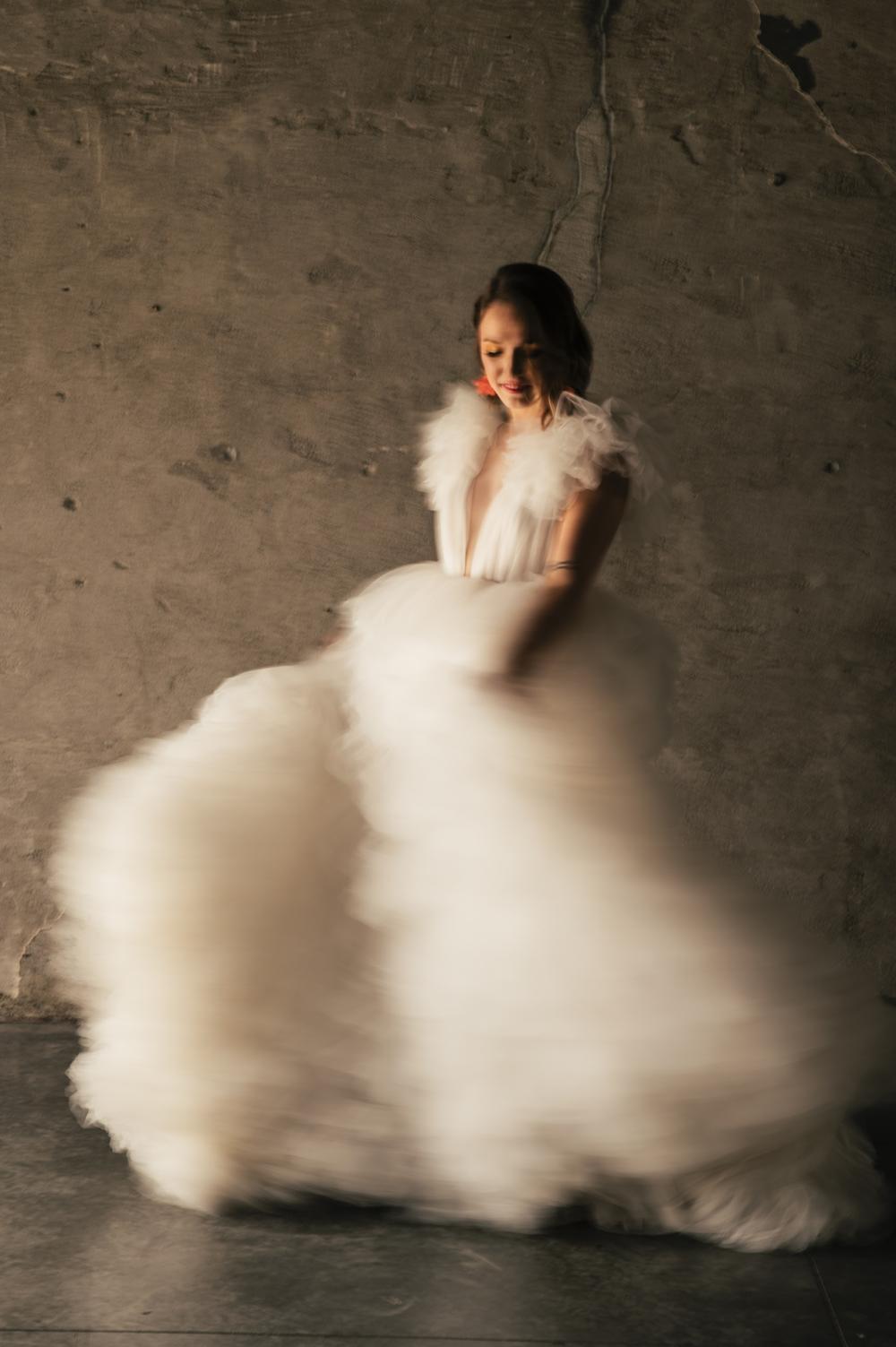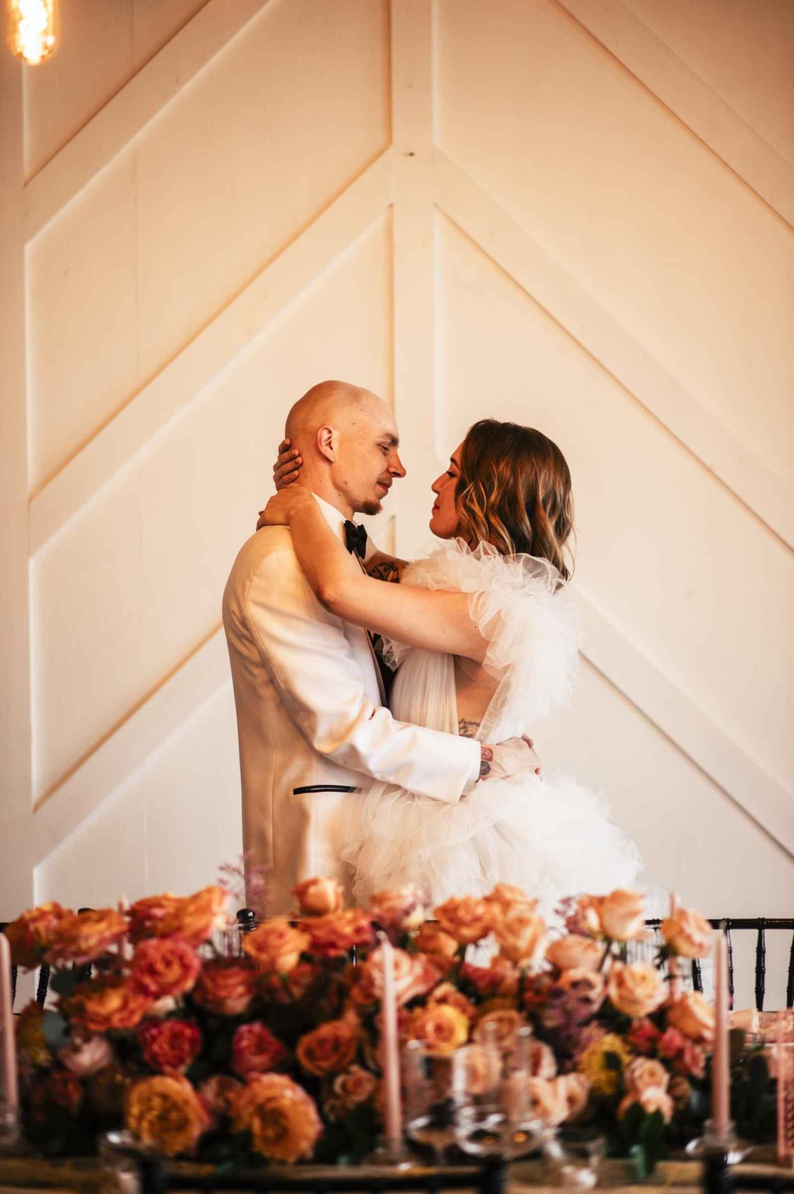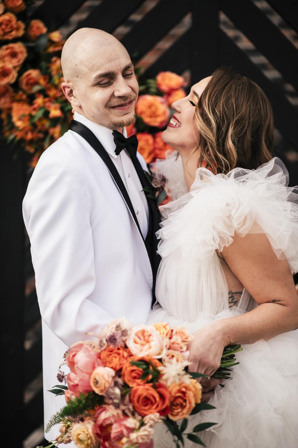 Much of this style shoot was actually based around the bride's beautiful dress! Since it was voluminous and airy, the creative team wanted something that was a bit over-the-top and out-of-the-box for this shoot. It's also a very modern style of dress, so the team needed to create a space that highlighted that feature. To complement the gown, the hairstylist decided to style the bride's hair in simple waves with a delicate braid since the dress was already so extravagant. The makeup artist also brought in sunset tones in her makeup. As for the non-traditional style of wedding, that was inspired by the couple. "Our couple also has a more edgy fashion sense so we wanted to go for a look that was a bit more outside the box than traditional," Beth explains. We think it turned out just perfect!