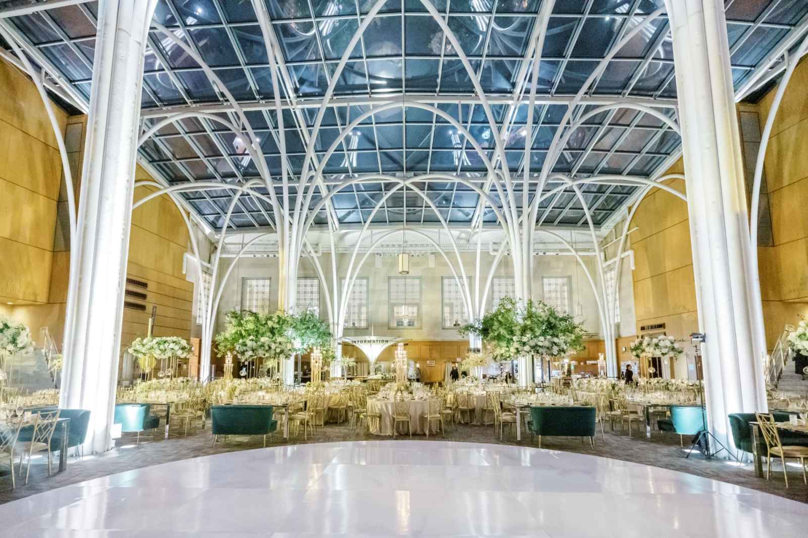 Couples seeking an outdoor element will love the East Garden, a lush oval lawn surrounded by mature trees and blooming seasonal florals. It’s a lovely space for intimate ceremonies or cocktail hours, accommodating up to 350 for social events and 250 for seated setups. The garden is perfect for romantic or fairytale-inspired weddings and includes all the same services and amenities provided in the indoor spaces.