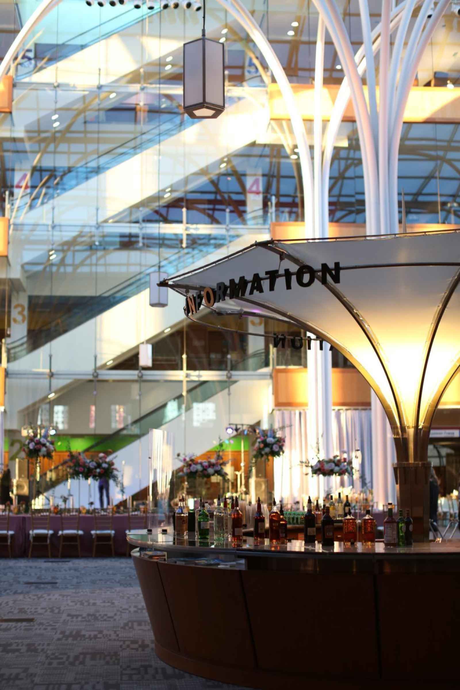 One of the most popular event spaces is the Atrium, a glass-encased, light-filled hub at the center of the library complex. With stunning views of the city and modern architecture, it creates a grand atmosphere perfect for receptions. The space can accommodate up to 500 guests for seated dinners, with a slightly smaller capacity if you plan to include a dance floor. Included with the rental is security, parking, restroom attendants, cleaning services, two bridal suites, two vendor rooms, a baby grand piano and a dance floor. Amber uplighting is also available to enhance the ambiance and create an unforgettable atmosphere!