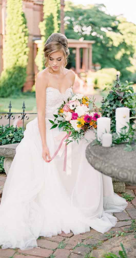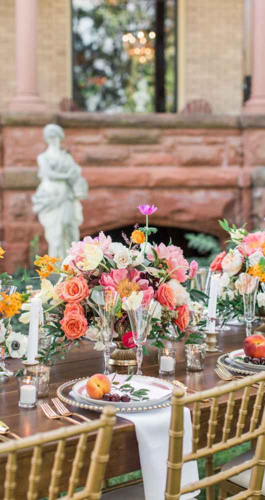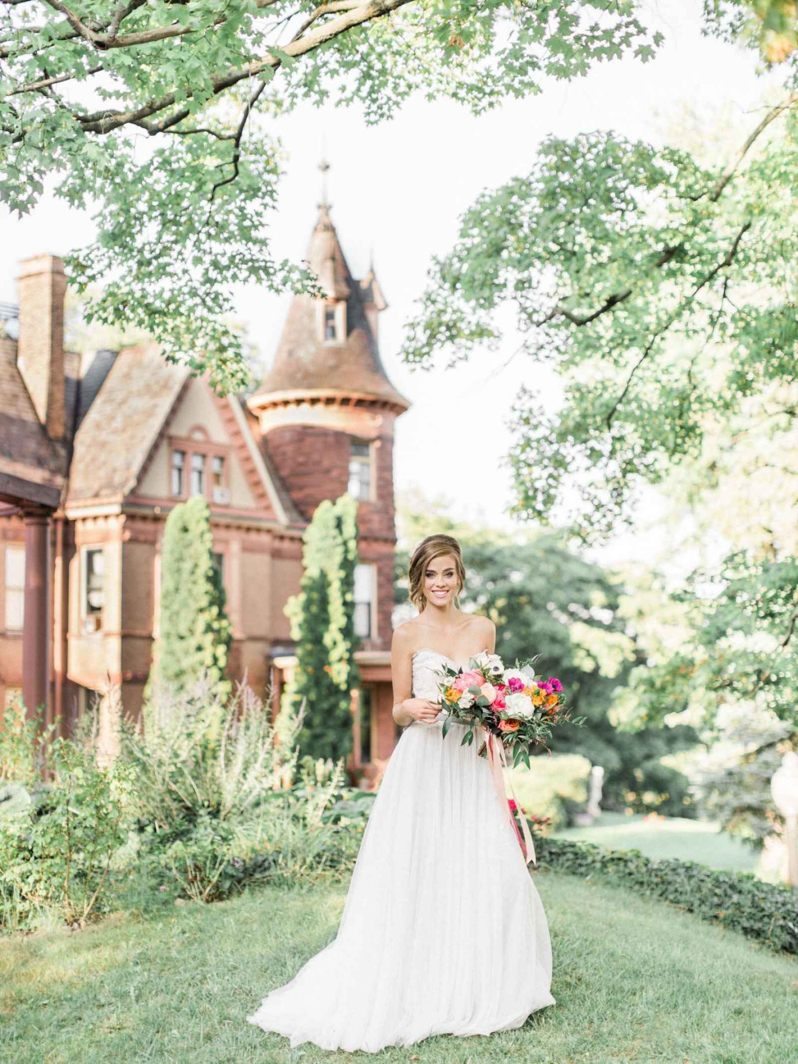 What could be better for an upscale, summer wedding than lush, elegant gardens and a whimsical atmosphere? Henderson Castle was our venue of choice for this shoot. We knew with all its rich, historic details and other unique characteristics, it was the ideal backdrop for the dreamy vision we had in our hearts.