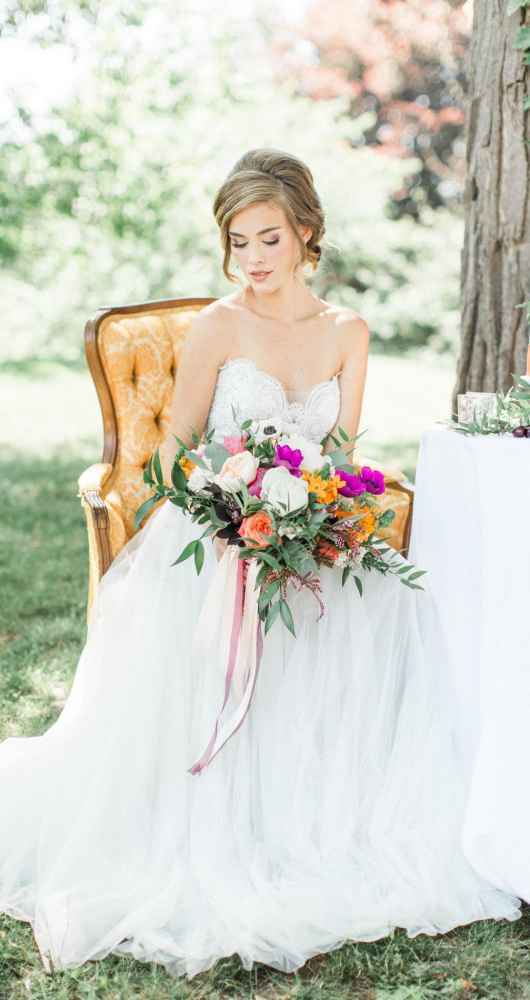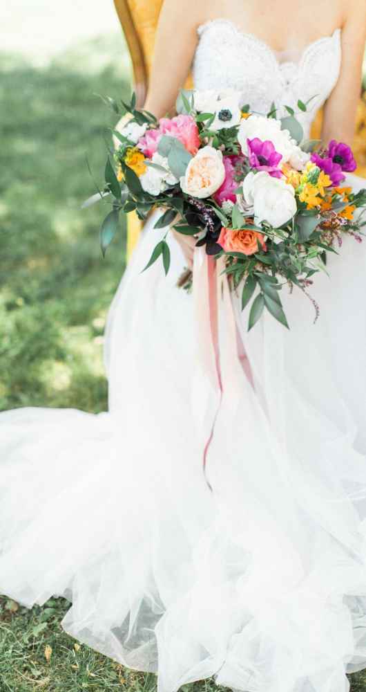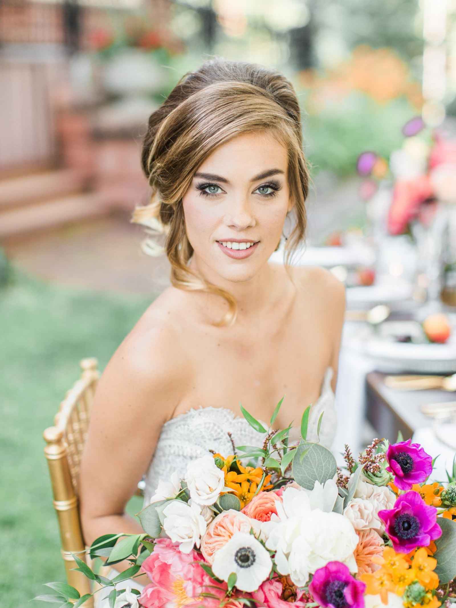 We aimed for an overall look that was vibrant and colorful yet soft and elegant. “Creating white space with pops of color where needed was essential,” says Nicole. “We so often see neutrals and greenery, especially with the green trend right now, so it was fun to mix things up and to be bold with our selection.”