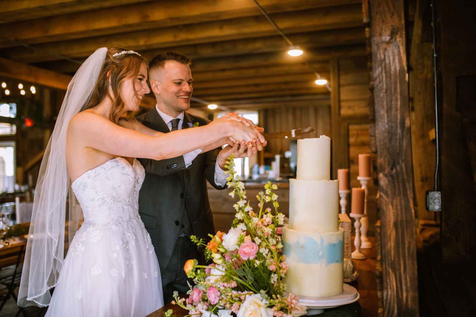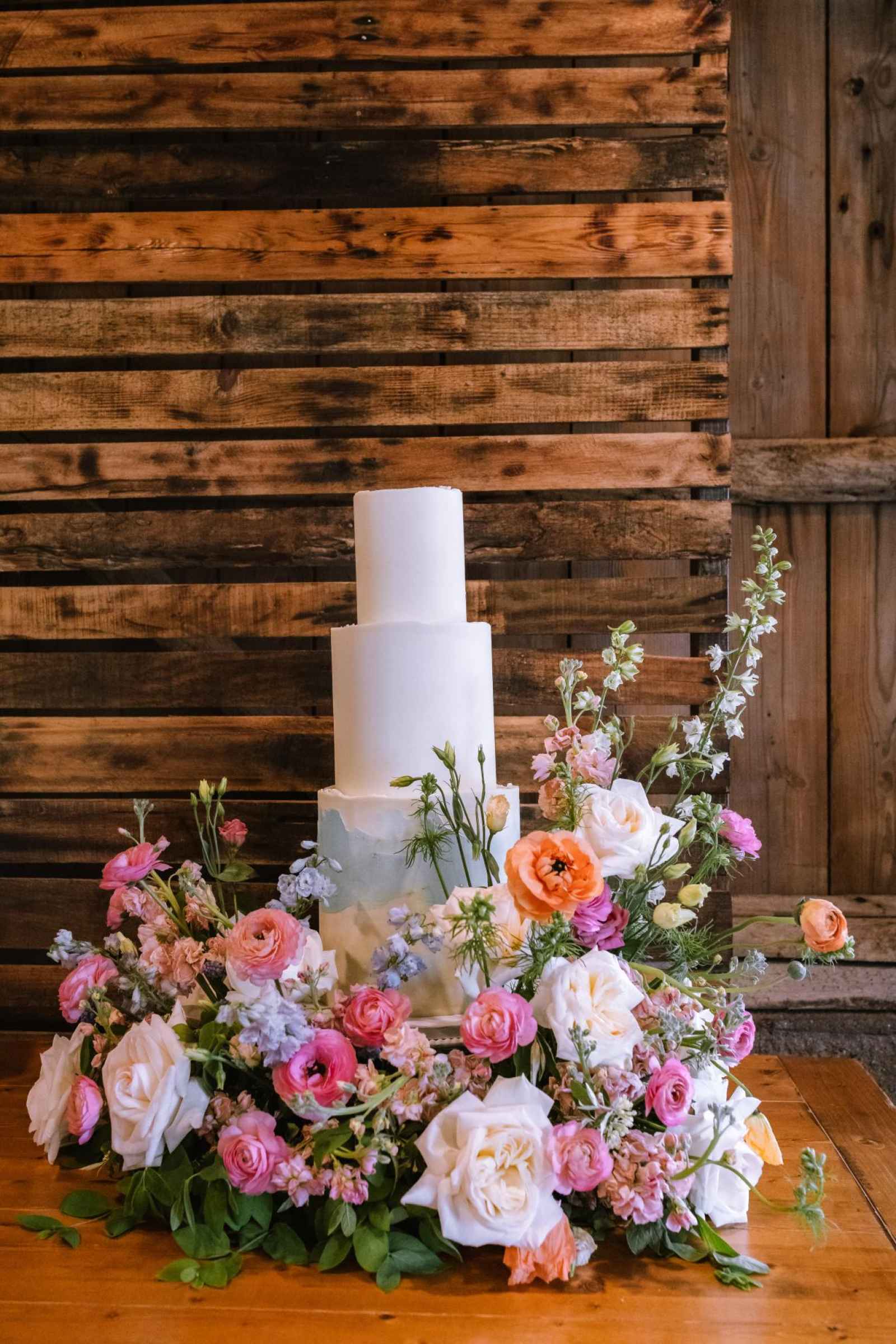 Look at this breathtaking three-tiered cake from MI Great Lakes Cakes! Adorned in an elegant all-white design with a delicate powder blue accent, it is a true masterpiece crafted to perfection! Nestled amidst a magnificent floral installation, the cake created a mesmerizing garden effect, as if it were a blooming marvel within a fairytale landscape. Its presence added an extra layer of allure to the already captivating scene, leaving everyone in awe of its beauty and artistry.