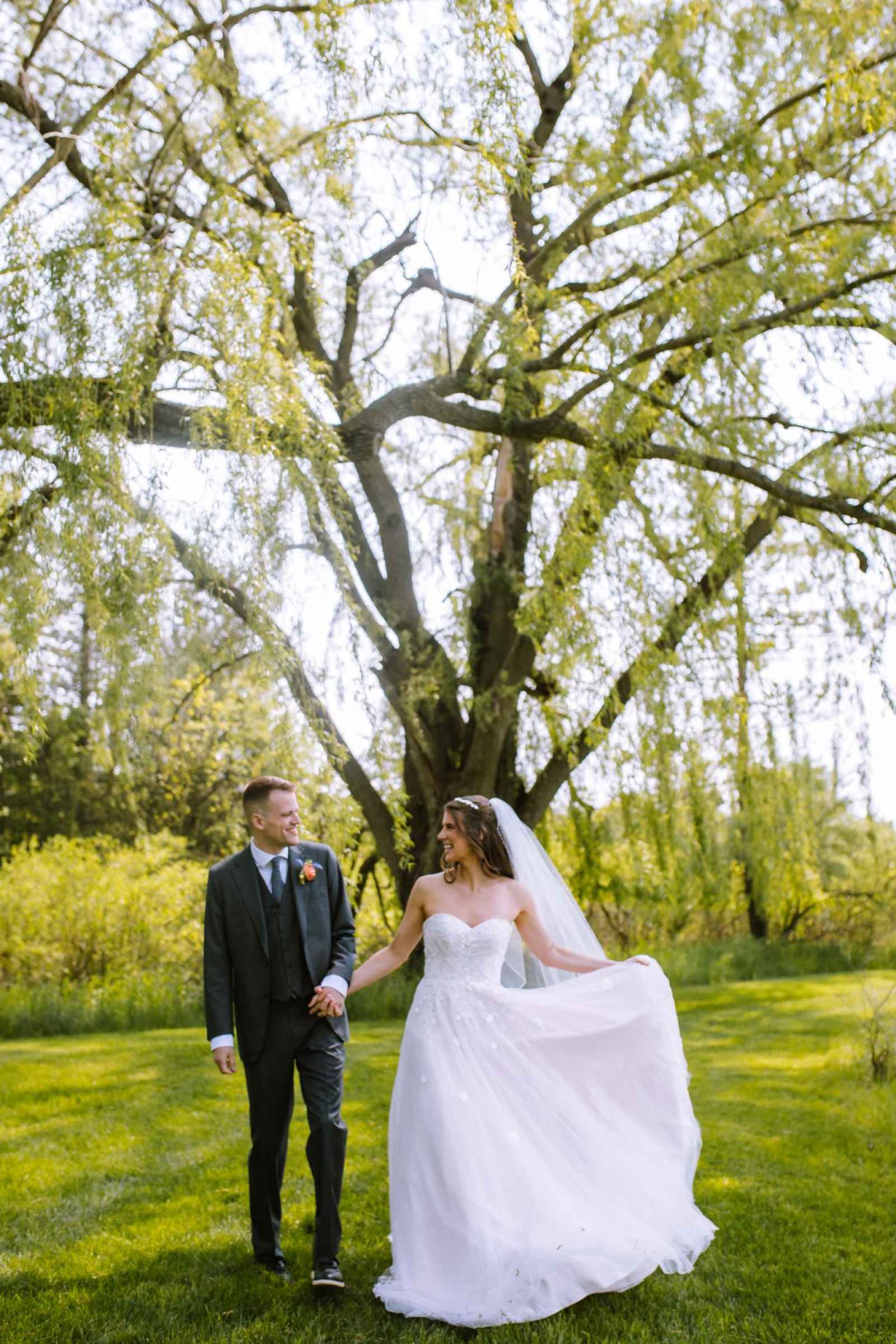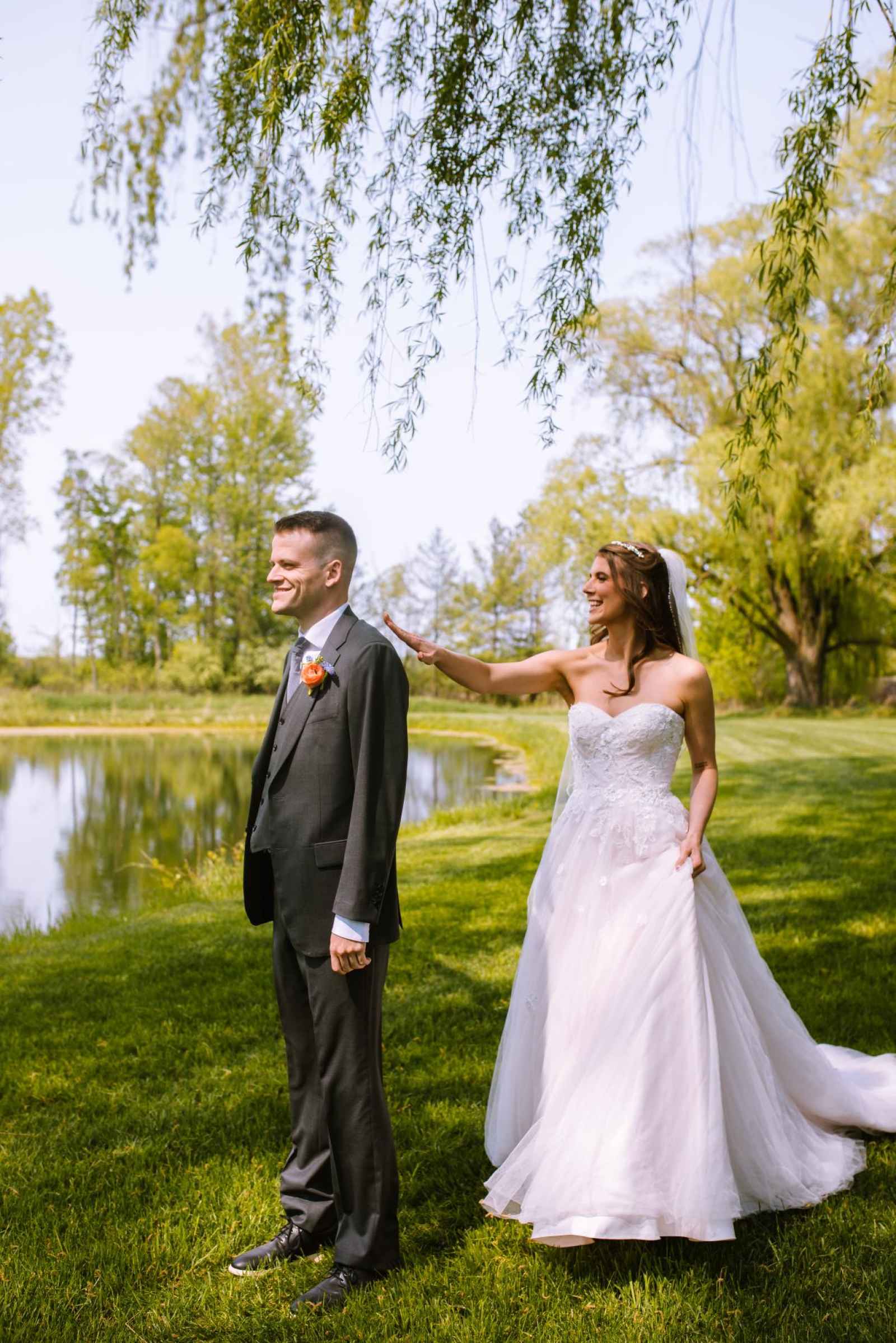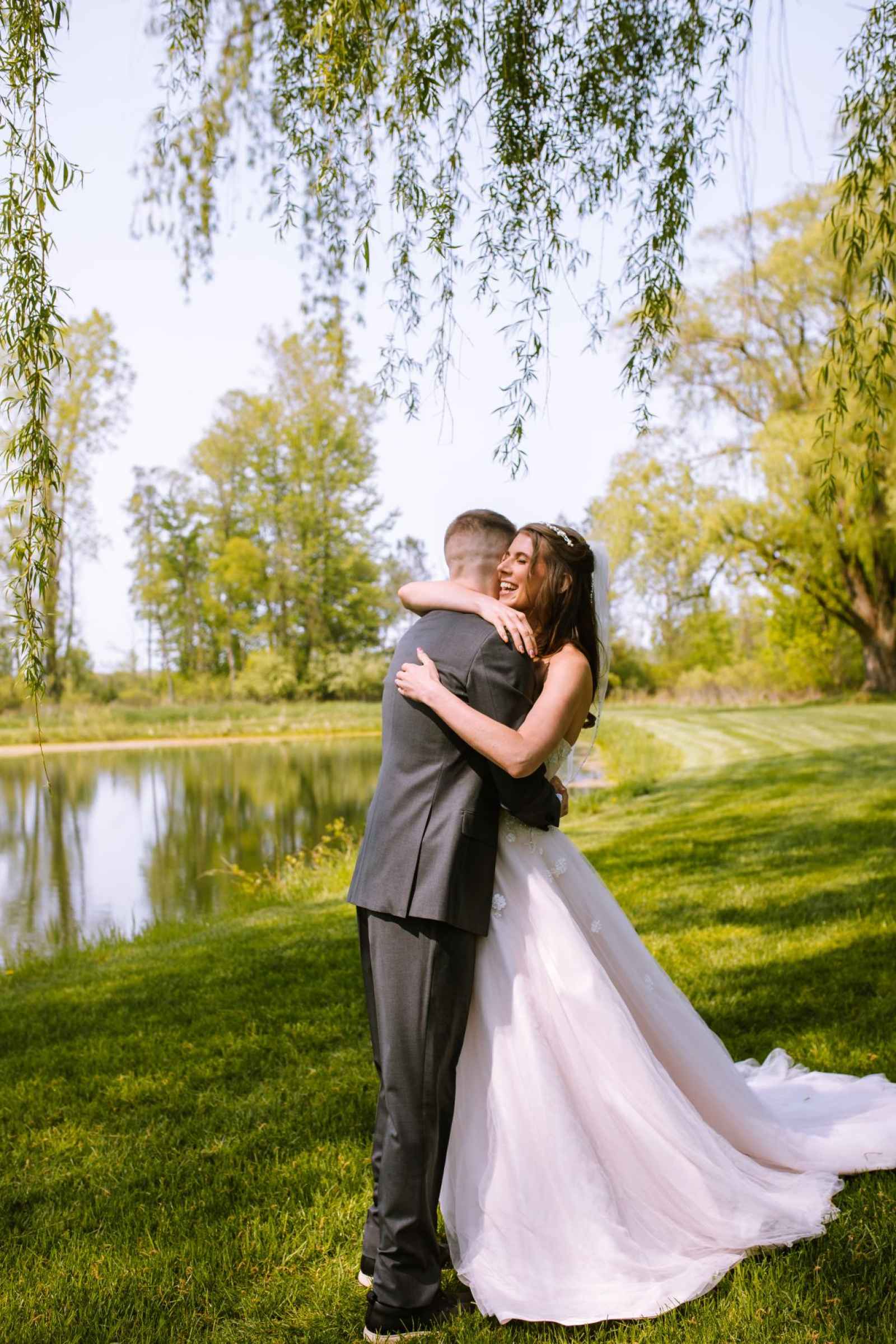 We couldn't have chosen a more enchanting location for our cover shoot than Bear Creek Farm. Situated on seventy acres of rolling hills in Lainsburg, Michigan, the farm is nestled amidst breathtaking landscapes, with a picturesque pond adorned by graceful weeping willows. The historic barn, built in 1908, exudes rustic charm and offers a picturesque backdrop for any celebration. Bear Creek Farm's allure extends beyond its natural beauty, as it provides endless photographic opportunities, a relaxing atmosphere and joyous experiences for all. And their extensive inventory of rental items really brought the entire look together!
