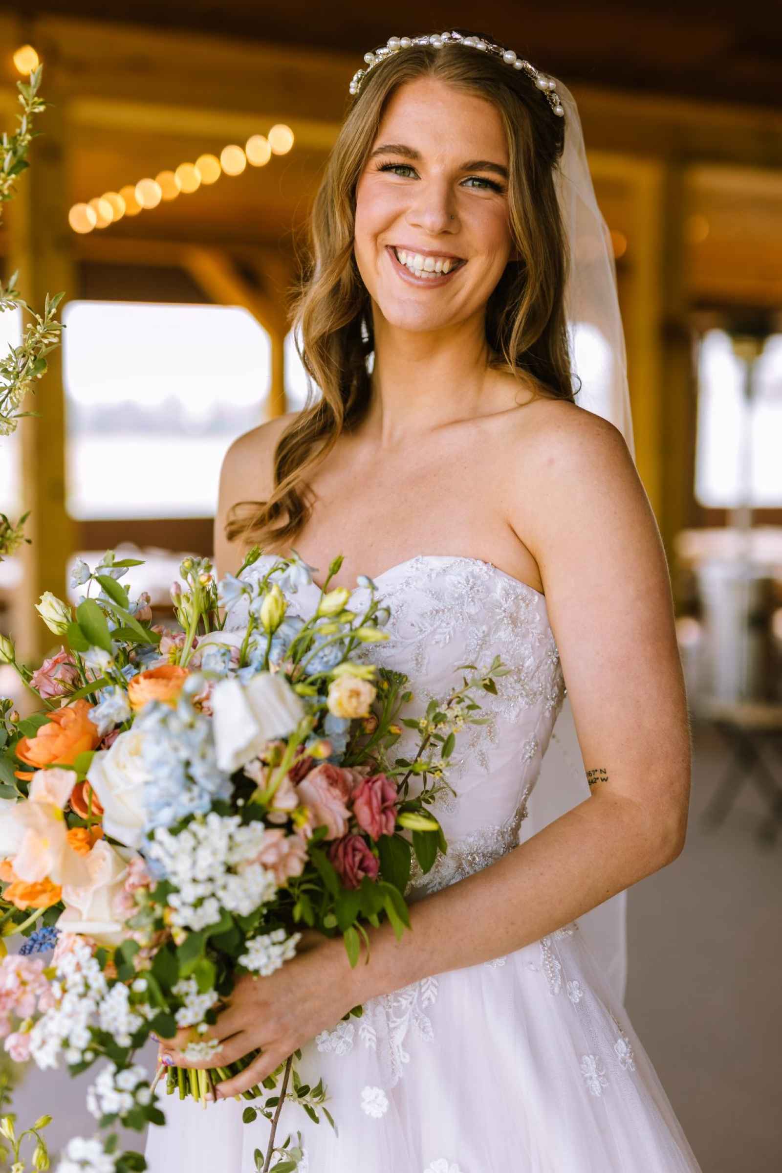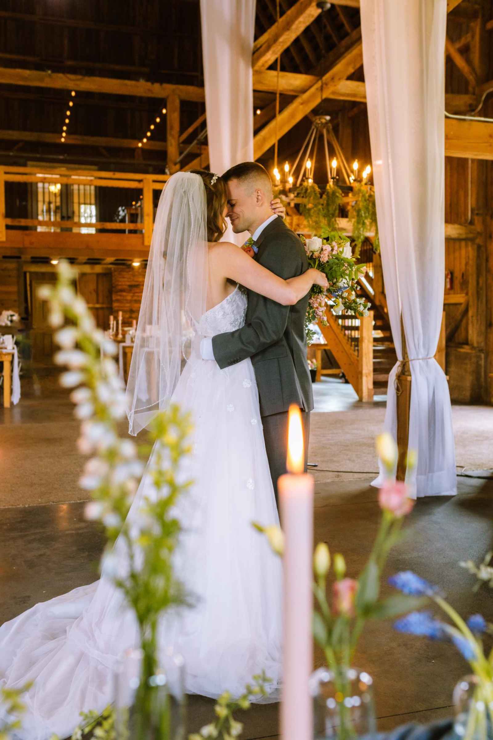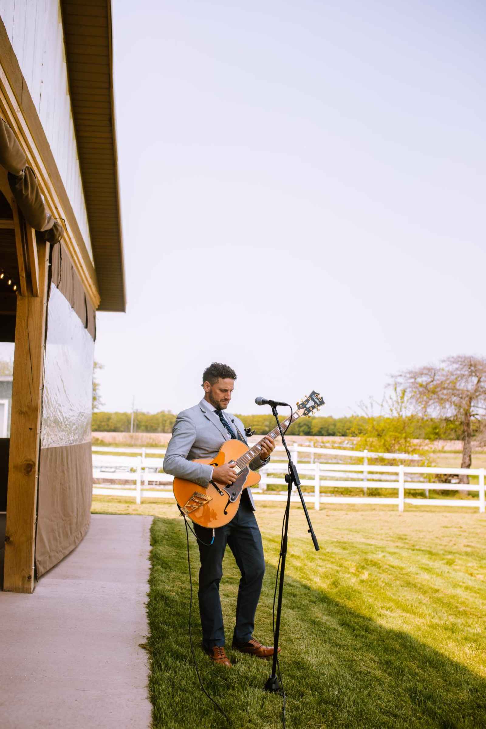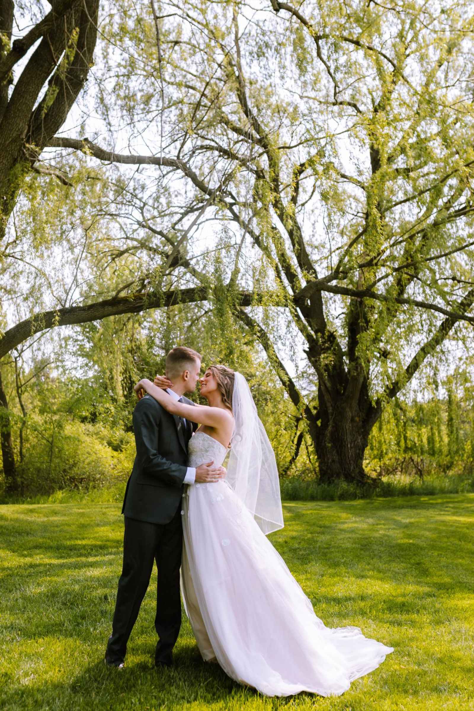 We couldn't have chosen a more enchanting location for our cover shoot than Bear Creek Farm. Situated on seventy acres of rolling hills in Lainsburg, Michigan, the farm is nestled amidst breathtaking landscapes, with a picturesque pond adorned by graceful weeping willows. The historic barn, built in 1908, exudes rustic charm and offers a picturesque backdrop for any celebration. Bear Creek Farm's allure extends beyond its natural beauty, as it provides endless photographic opportunities, a relaxing atmosphere and joyous experiences for all. And their extensive inventory of rental items really brought the entire look together!