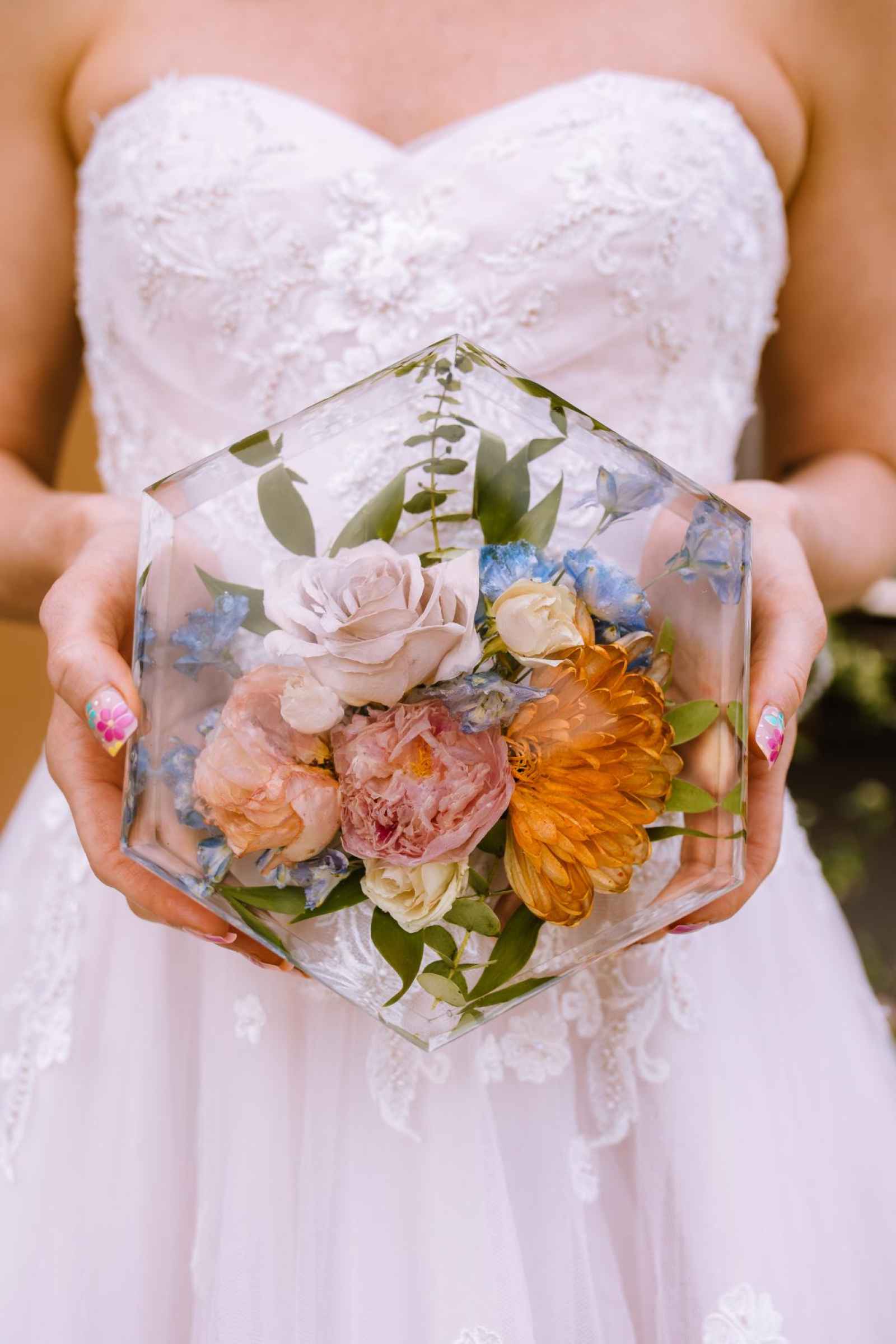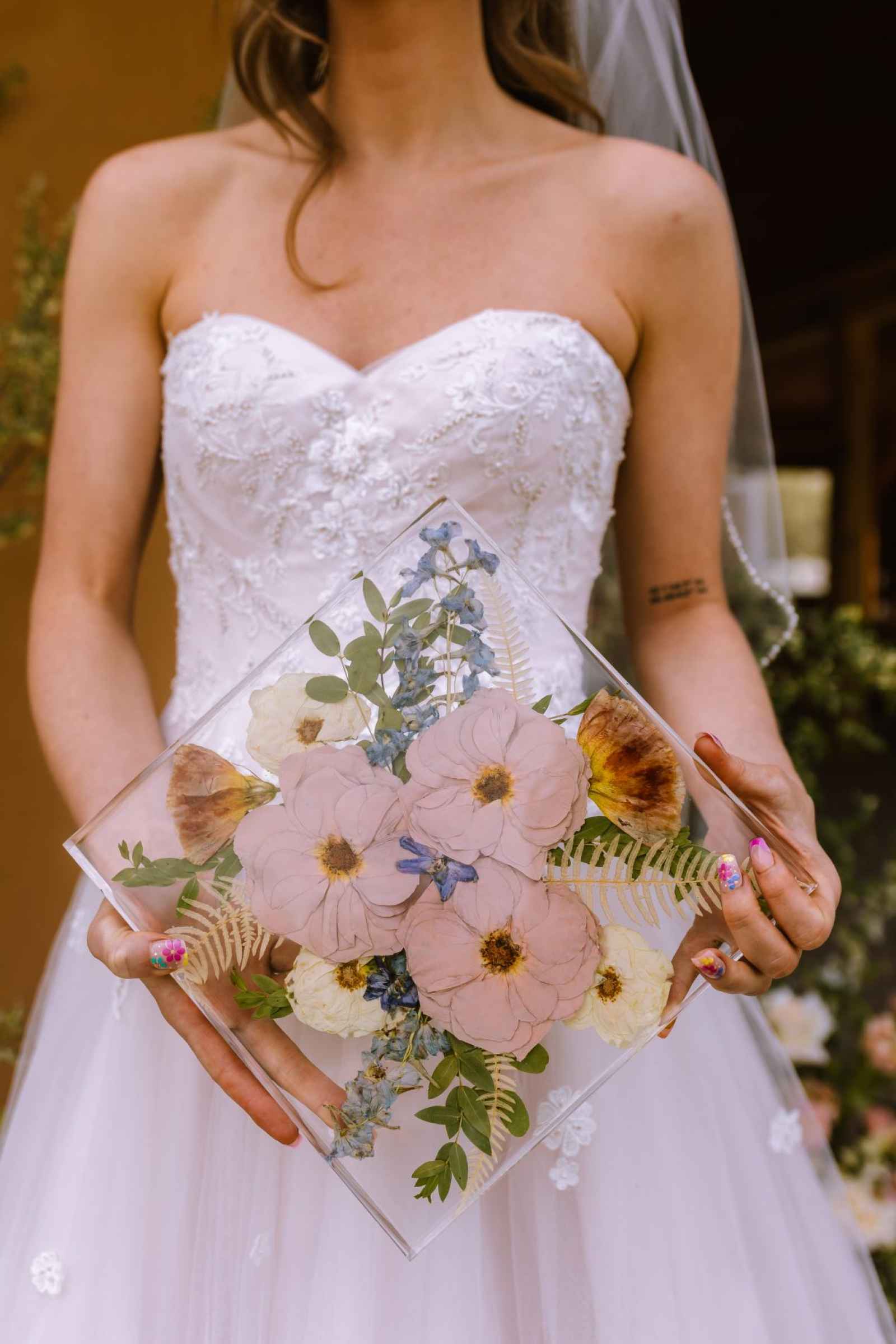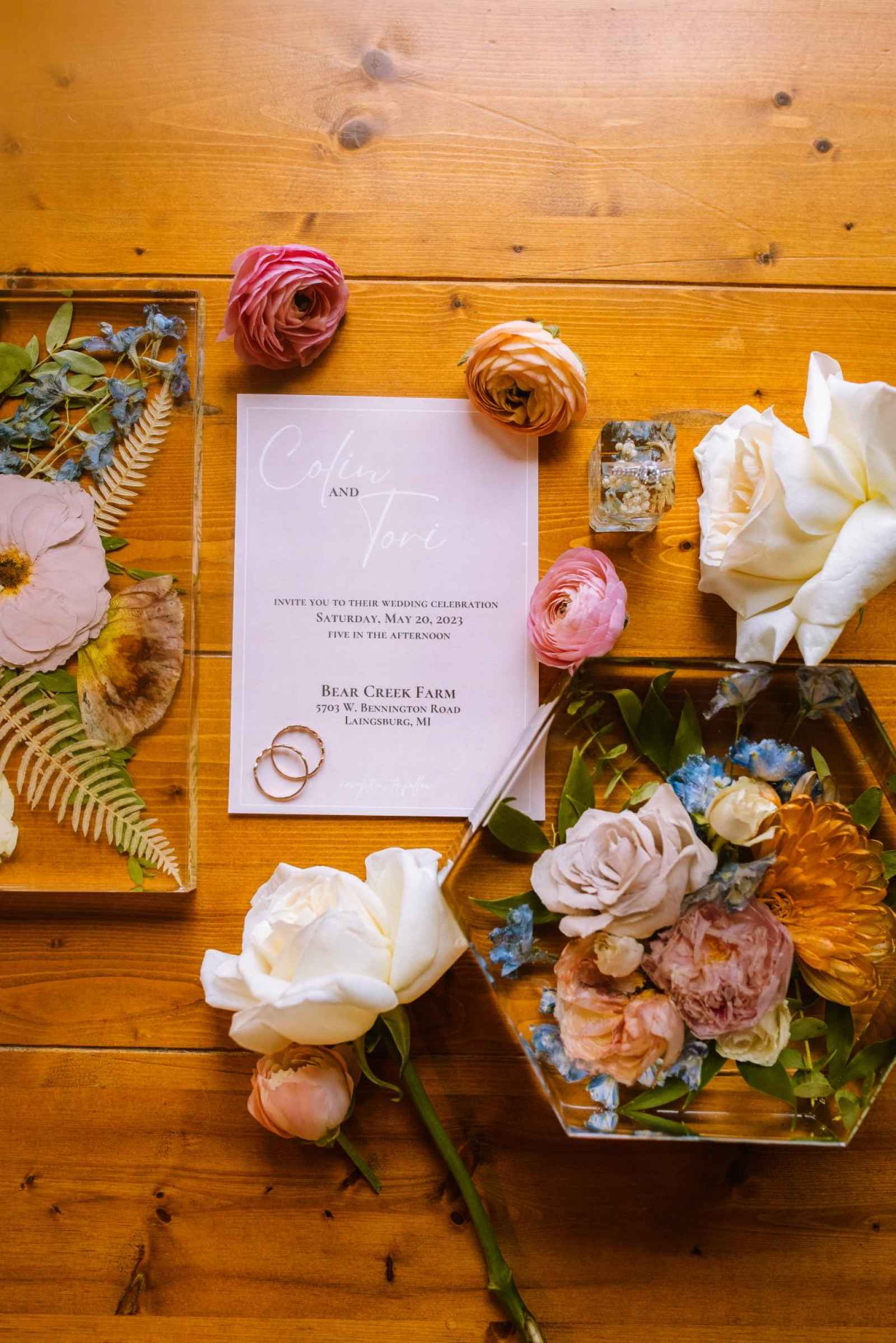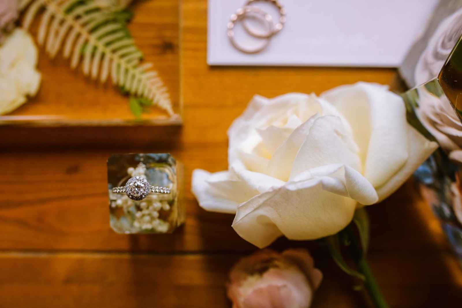 Emerald Schill Studio added a touch of everlasting beauty to our flat lay display with their stunning preserved floral blocks and ring holder. The intricate designs showcased a vibrant array of colors and textures, enhancing the overall visual appeal of the design. From key chains to trays, we love all the unique ways they can preserve your bouquet, allowing its beauty to endure well beyond the wedding day. And this experience wouldn't be complete without Emerald Schill Studio preserving some florals from our very cover shoot! Click here for a special feature on how she allowed our beautiful blooms to live on.