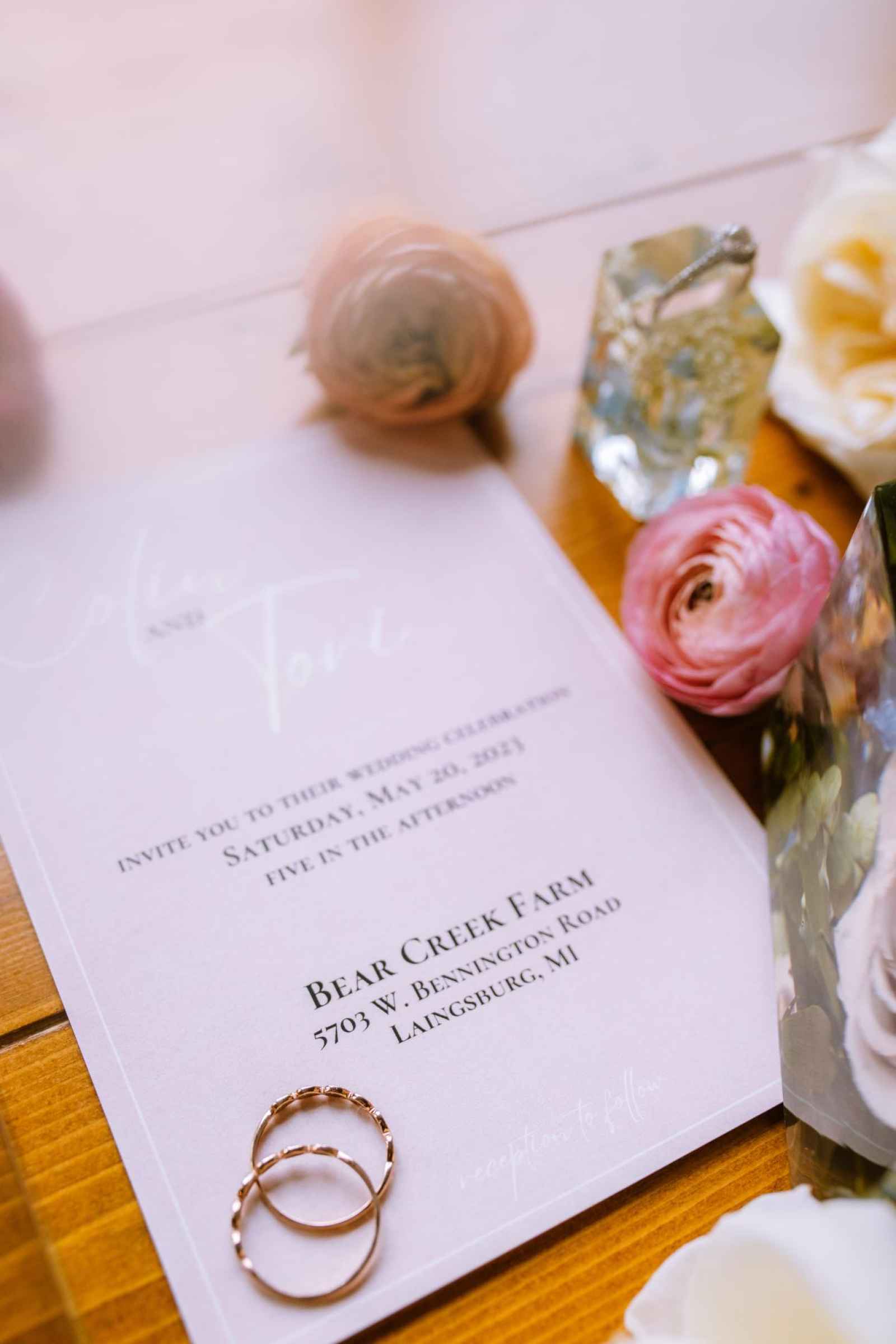 Wedding Stationery by PSR Designs of Indiana brought timeless beauty into our cover shoot with their delicate invitation design. The light blush color palette added a touch of romance and the whimsical font played off our garden theme perfectly!