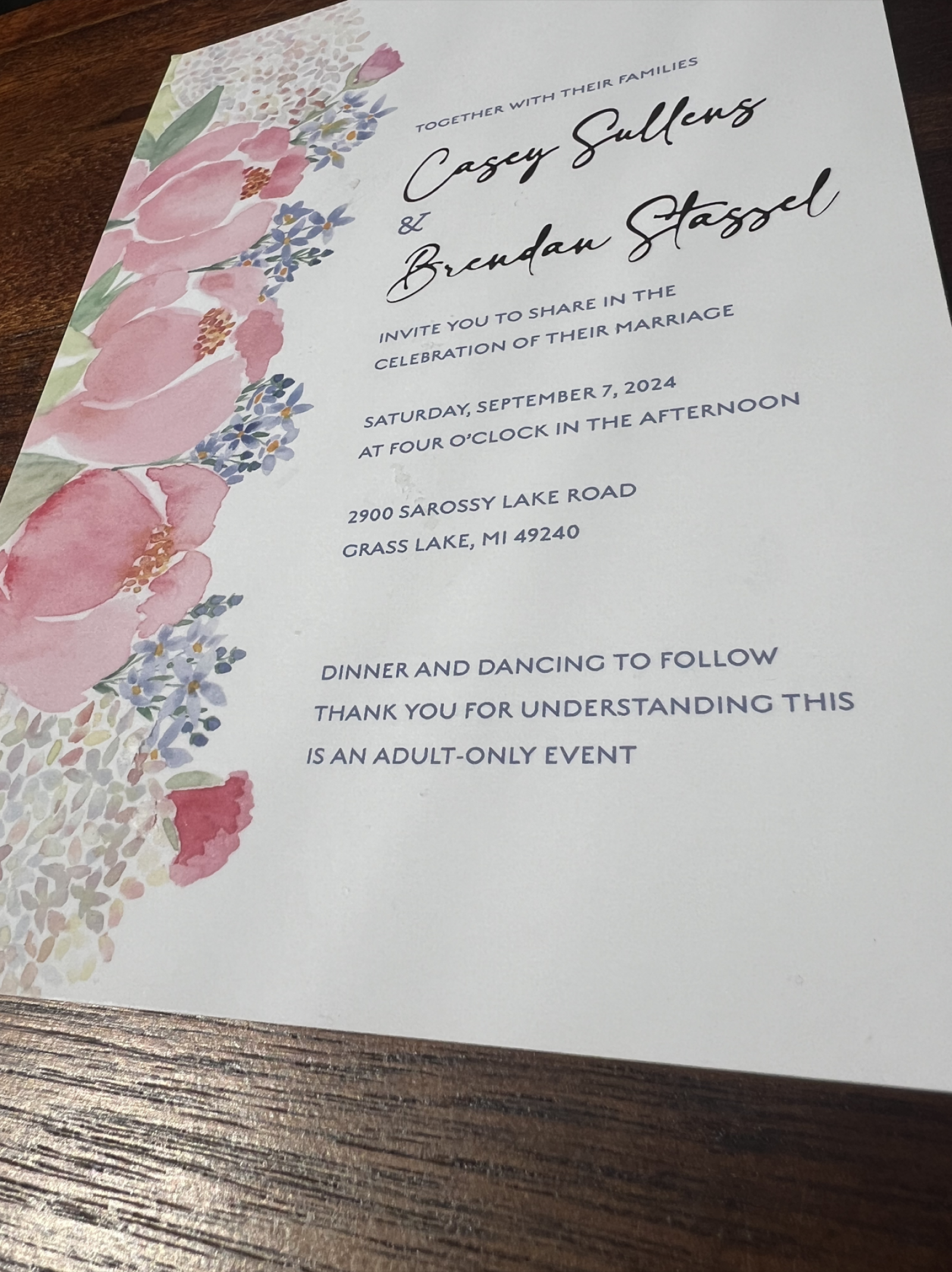 - “Please join us for an adults only reception at 6pm”