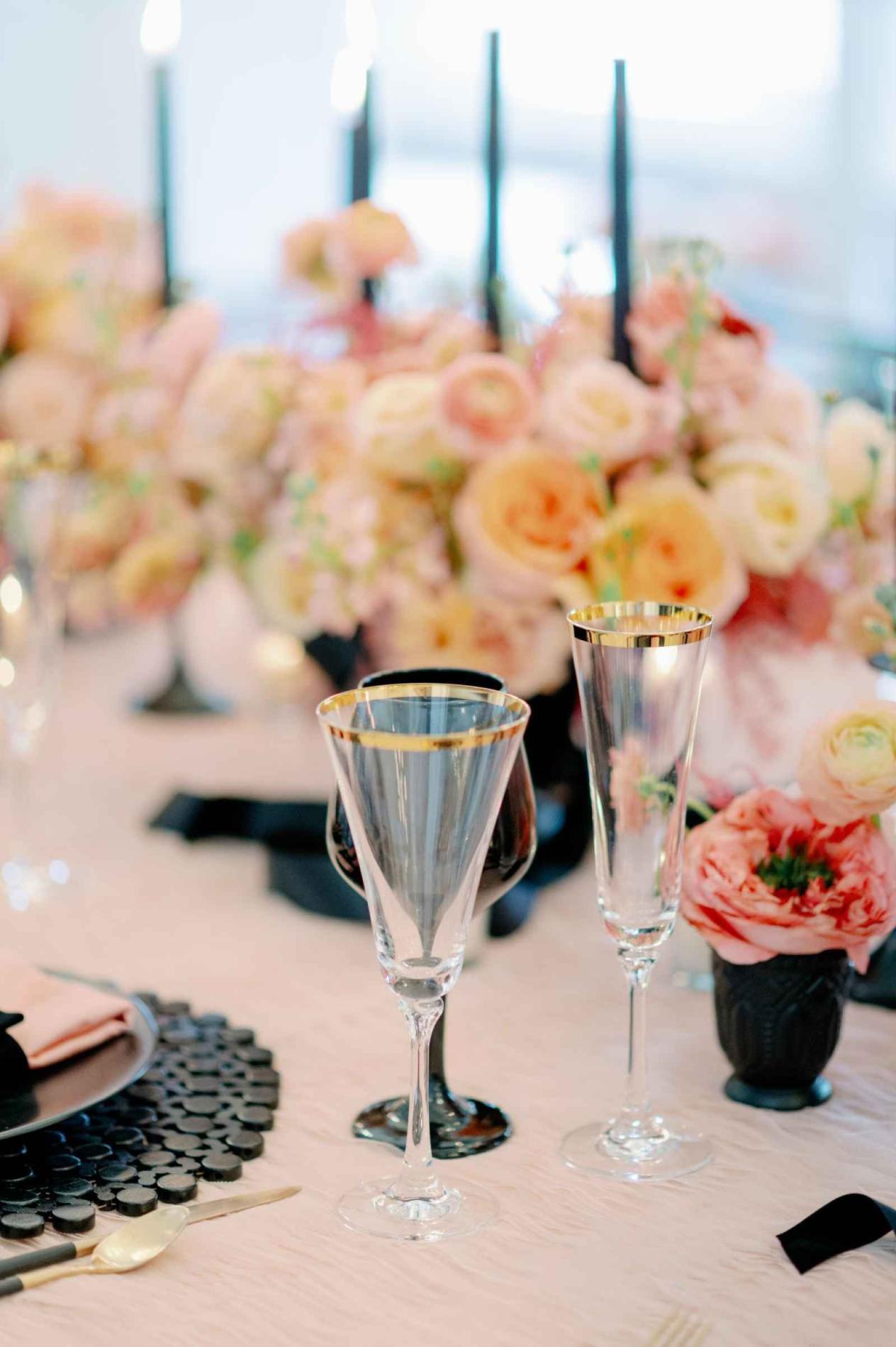 This already elegant tablescape is further enhanced with AAYS' gold-rimmed Charlotte glassware.
