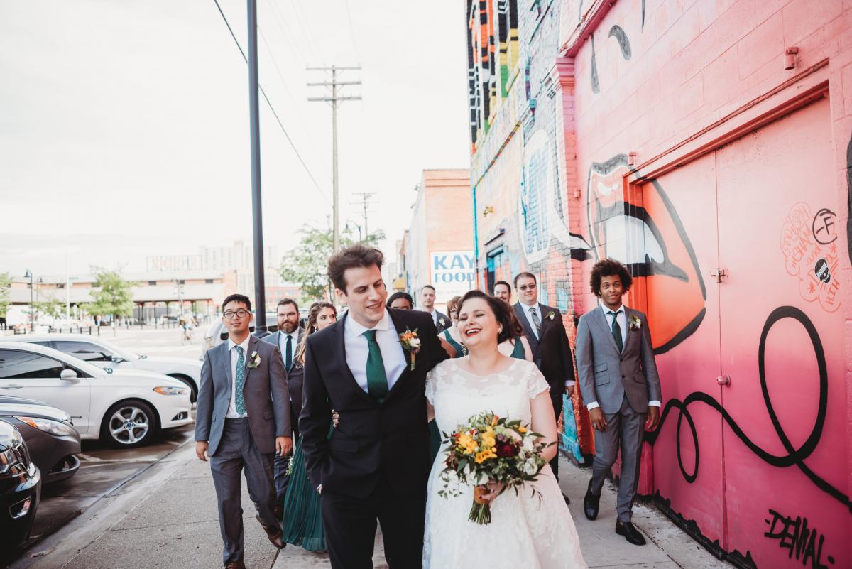 When the planning started, the couple knew that they did not want a traditional wedding. They wanted a celebration that would be unique to them. “We wanted a wedding that would reflect us,” David says. “Detroit has always been special to us. We took a tour of the Whiskey Factory and knew it was the perfect spot.”