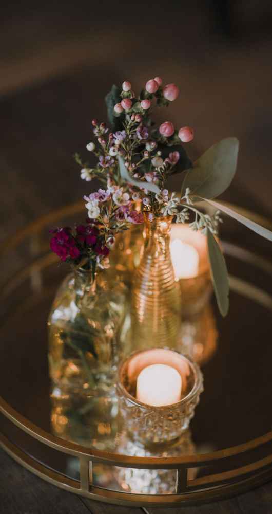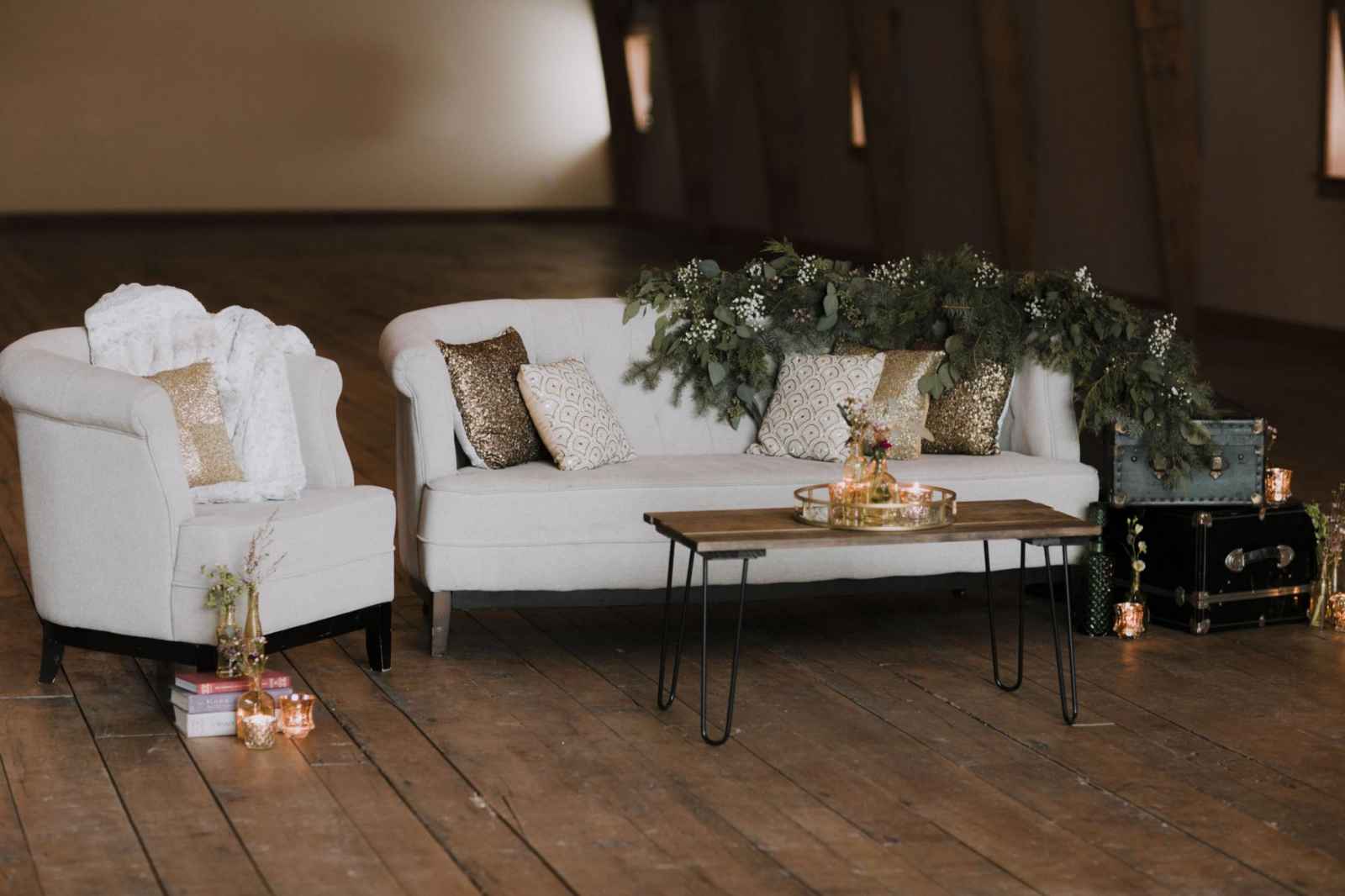 By mixing vintage and boho styles using key pieces from their homes and lounge seating and candles from 307 events, the team proved you can be creative with mixing textures and metals and still create a cohesive look.