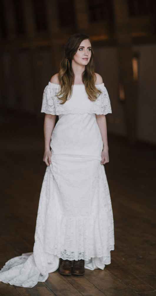 The bride’s lace, off-the-shoulder dress was simple, sweet and perfectly boho.