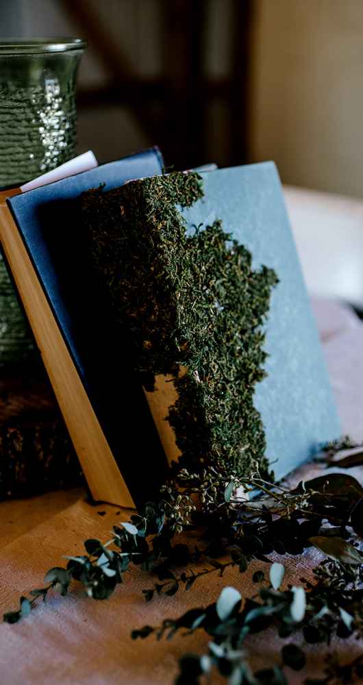 While Abigail turned to a rental company for chairs and tables, the tablecloths, furniture and decorations were all borrowed and hand-made. “The food was soup from Rhode Island, along with bread and salad made by several of my dear friends,” Abigail says.