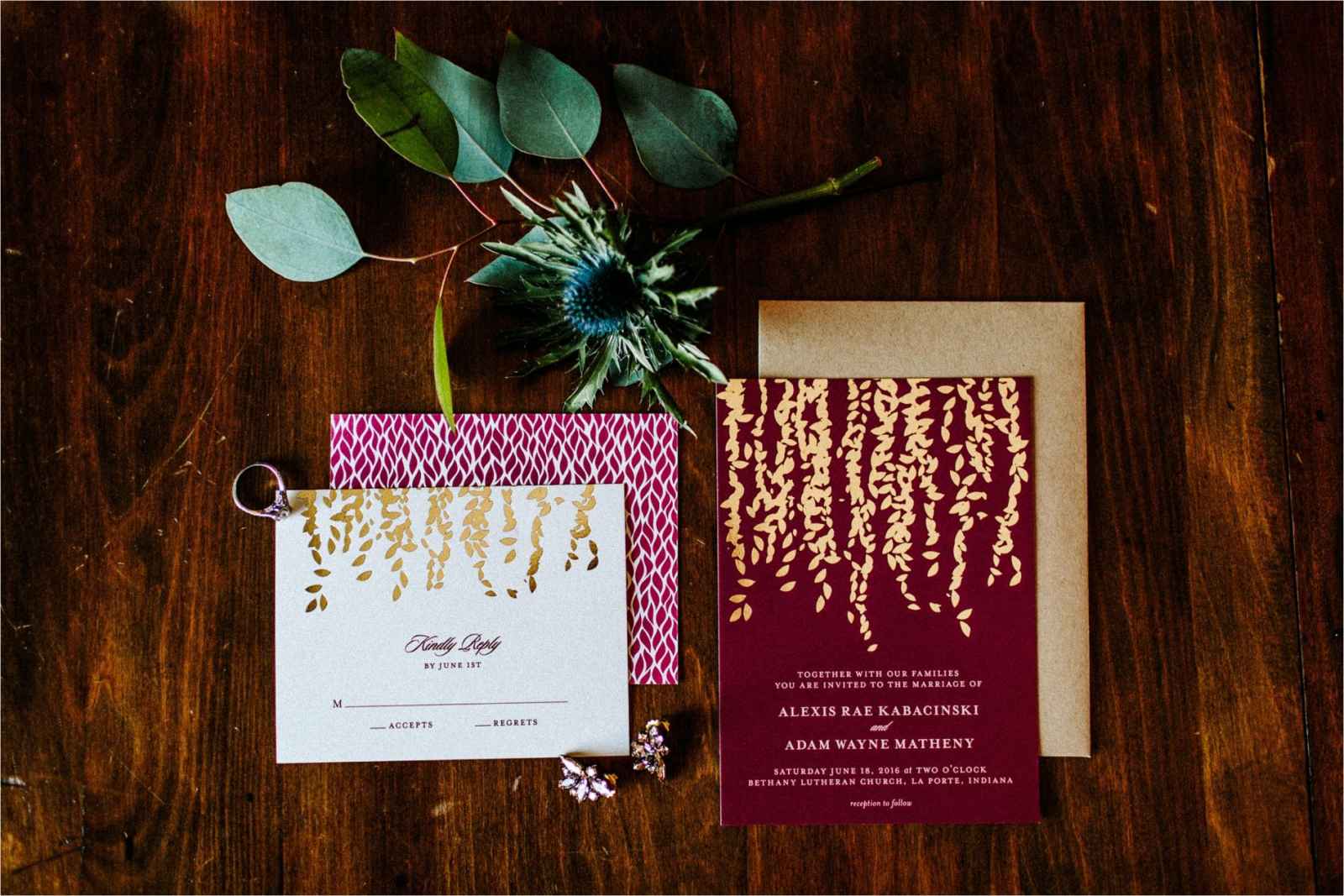 Alexis chose "Summer Berry" as her colors for the wedding after she stumbled upon a color inspiration picture on Pinterest. It showcased a darker pink/red with dark green and gold accents. "I thought the colors went so well together and that it was unique for an early summer wedding," says Alexis.