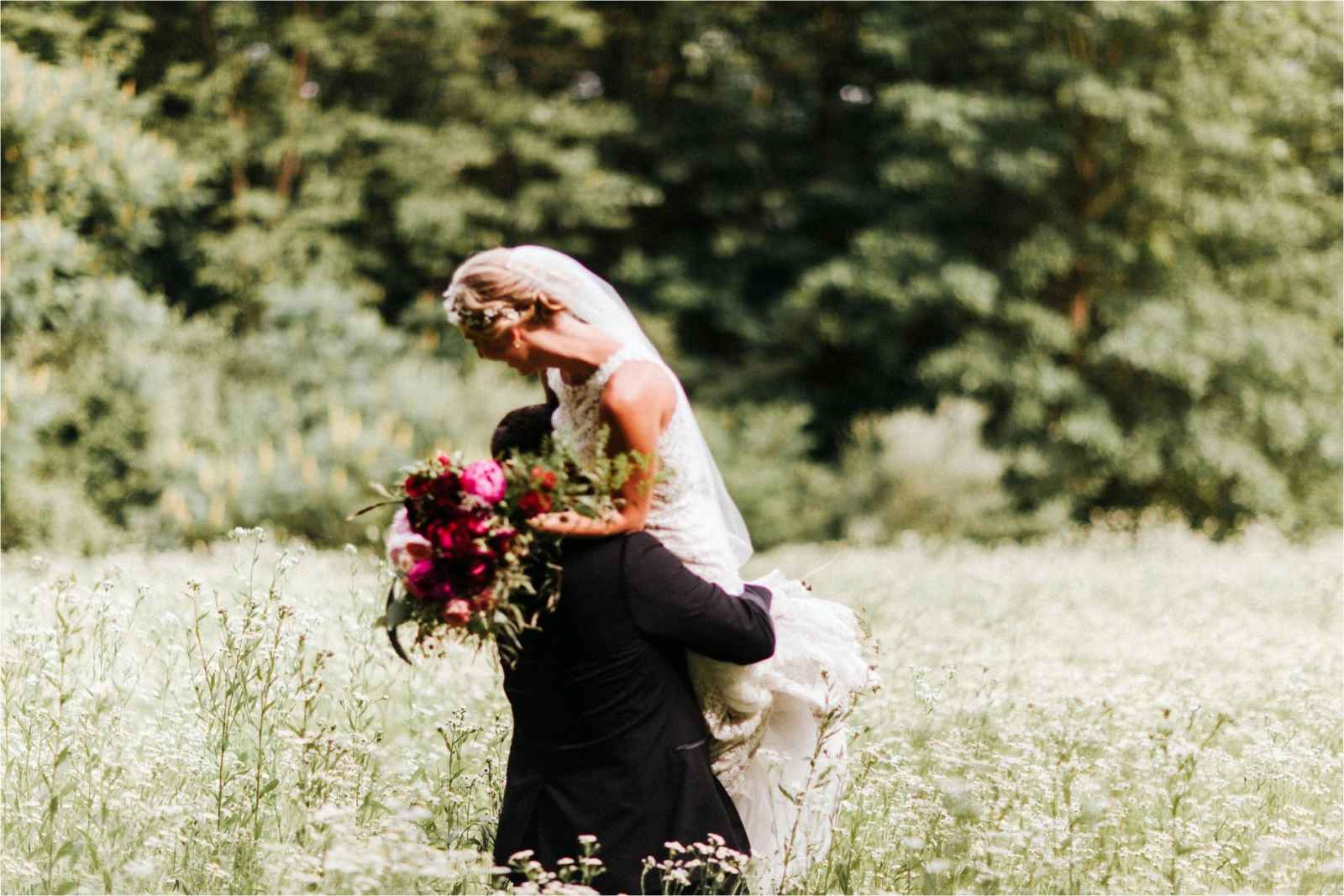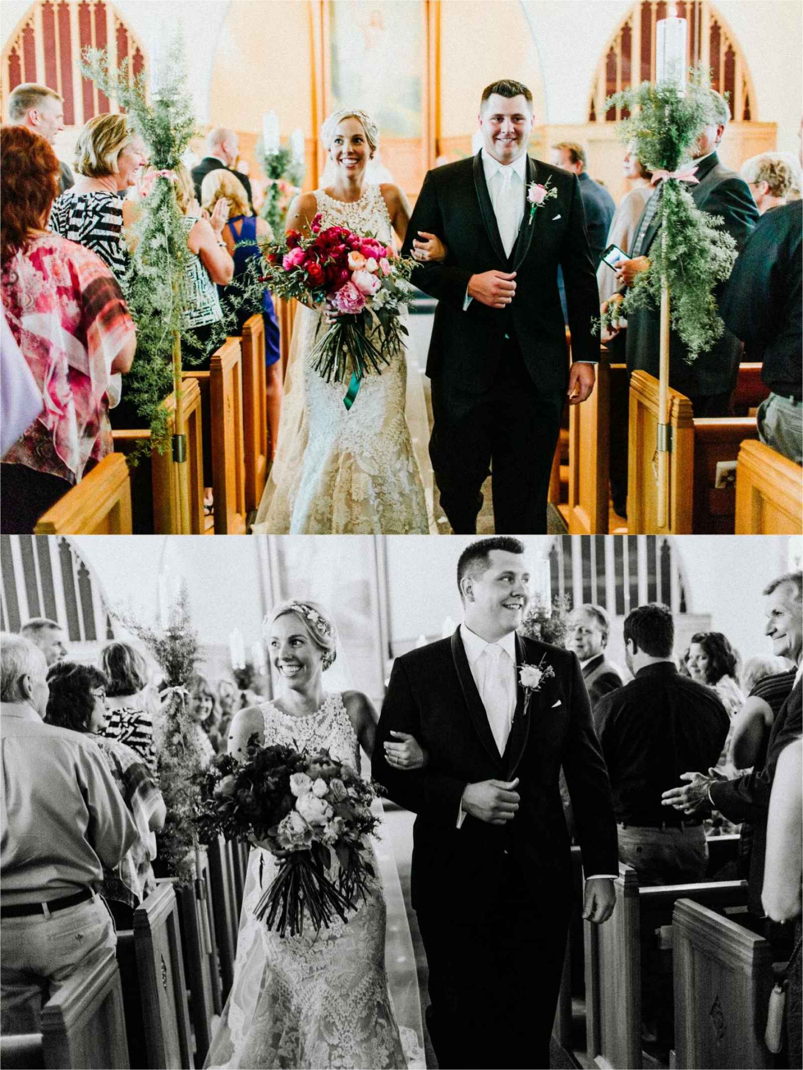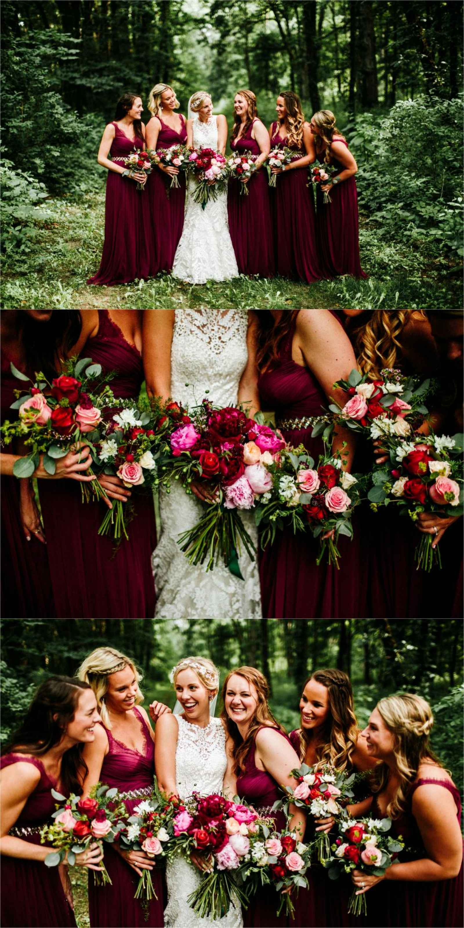 The floral, designed by wedding planner Tasha of Virtuous Events, brought the color palette to life with luscious reds, pops of pink and deep greens. Bouquets and centerpieces were designed with dark red scabiosas, Kansas City peonies, a variety of roses, wax flowers, Sarah Bernhart peonies, ranunculus, white scabiosas, jasmine, eucalyptus, succulents, china berries and more!