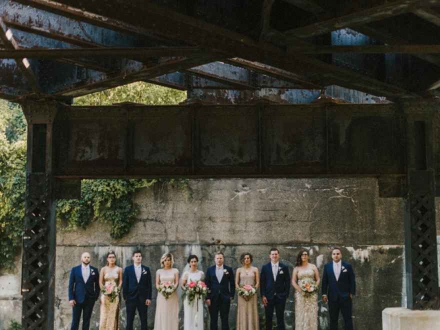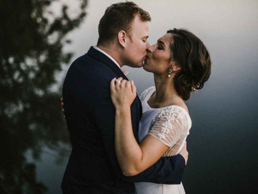 Brett and Thomas met at a friend's bonfire, and ever since then the fire has been alive. Thomas proposed when he and Brett went on one of their regular dog walks. The couple had a very busy schedule, so their dog walks were a special time for the two of them. Brett says, "Thomas proposed while on a dog walk at 'golden hour' at Loch Raven Reservoir in Towson, Maryland with my whole family present." The two were able to celebrate right away and start the wedding planning!