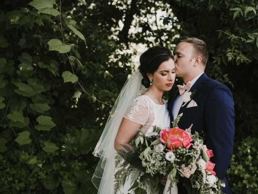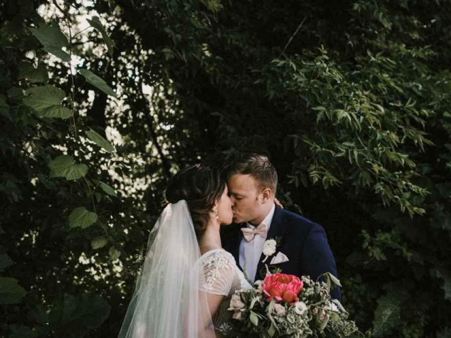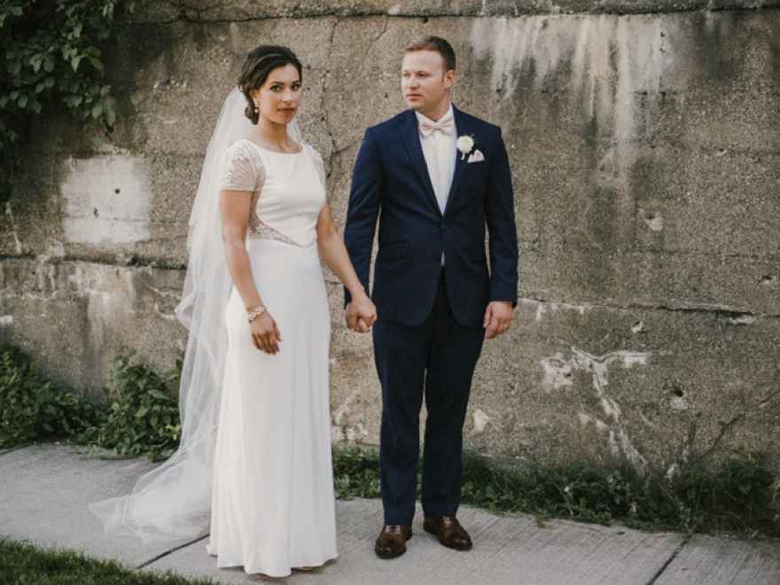 One of the things that Brett remembers the most about wedding planning is choosing the dress! During a second appointment at Fantastic Finds in Lansing, Michigan, Brett found the one. Brett says, "I had tried on something like 15 to 20 different dresses by this point, mostly with lace details. My sales associate brought it to me, on a hanger, and asked if I wanted to try it on. I honestly hated how it looked on the hanger, but said, 'sure, why not?' I put it on and knew instantly that it was 'my dress!' It was so unique and unlike anything else I had tried or seen."