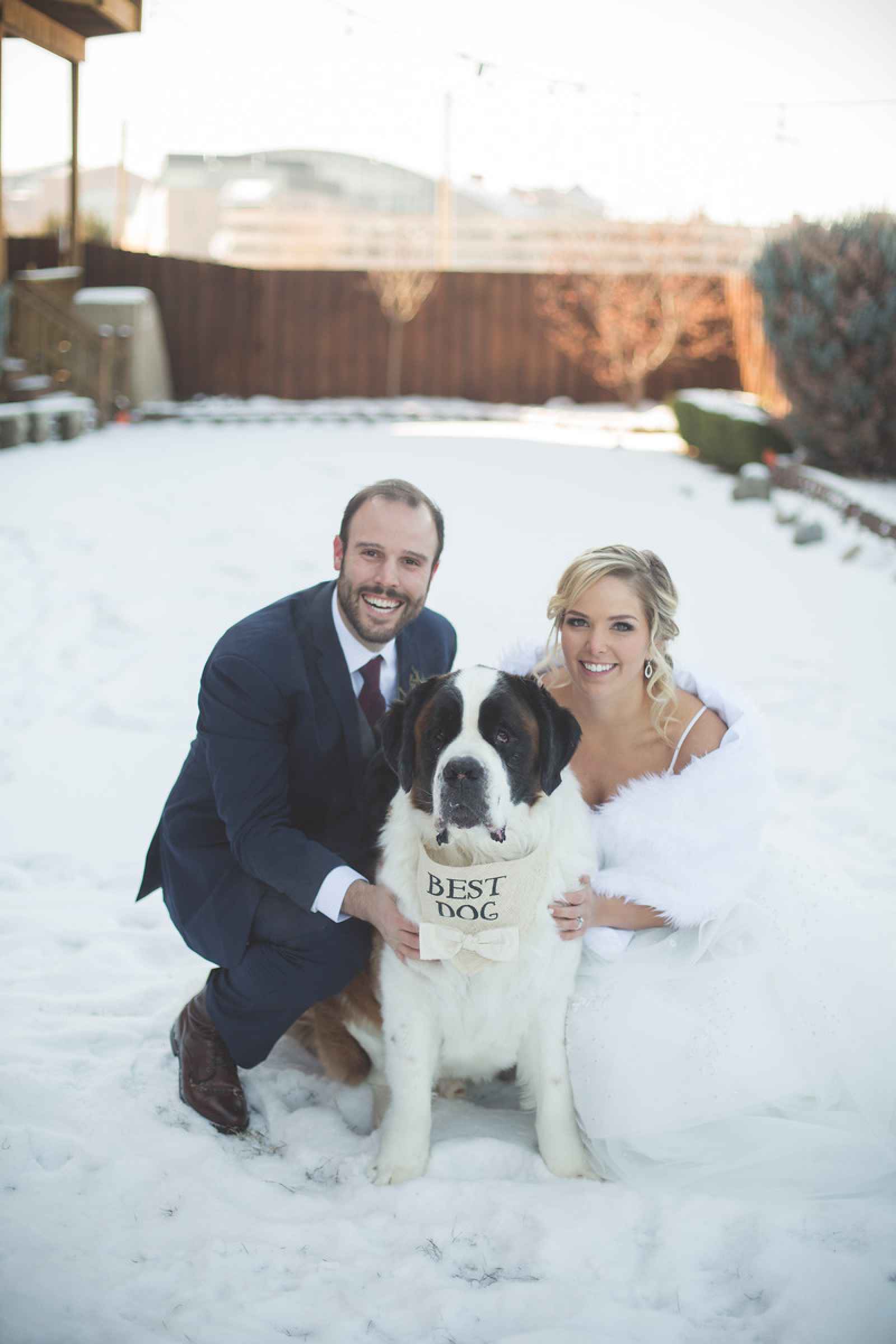 We have to give Brad some points for going the extra mile when proposing to Catherine. In describing their special getaway with their St. Bernard, Charlie, to Crystal Mountain, Michigan, Crystal says, “On our last day of the trip we took Charlie for a walk around the snow-covered golf course. On our walk, a couple passed us and asked if they could take a picture of our St. Bernard (which was not unusual because people commonly want a picture of Charlie). The gentleman said that I needed to get in that picture too, which caught me a little off--guard. That’s when Brad turned to me and got down on one knee. Afterwards, Brad told me that he had planned the whole thing and the couple worked at the ski shop and, that morning, he had told them he was proposing and asked if they could document it.”