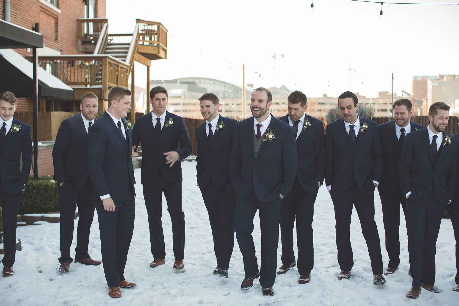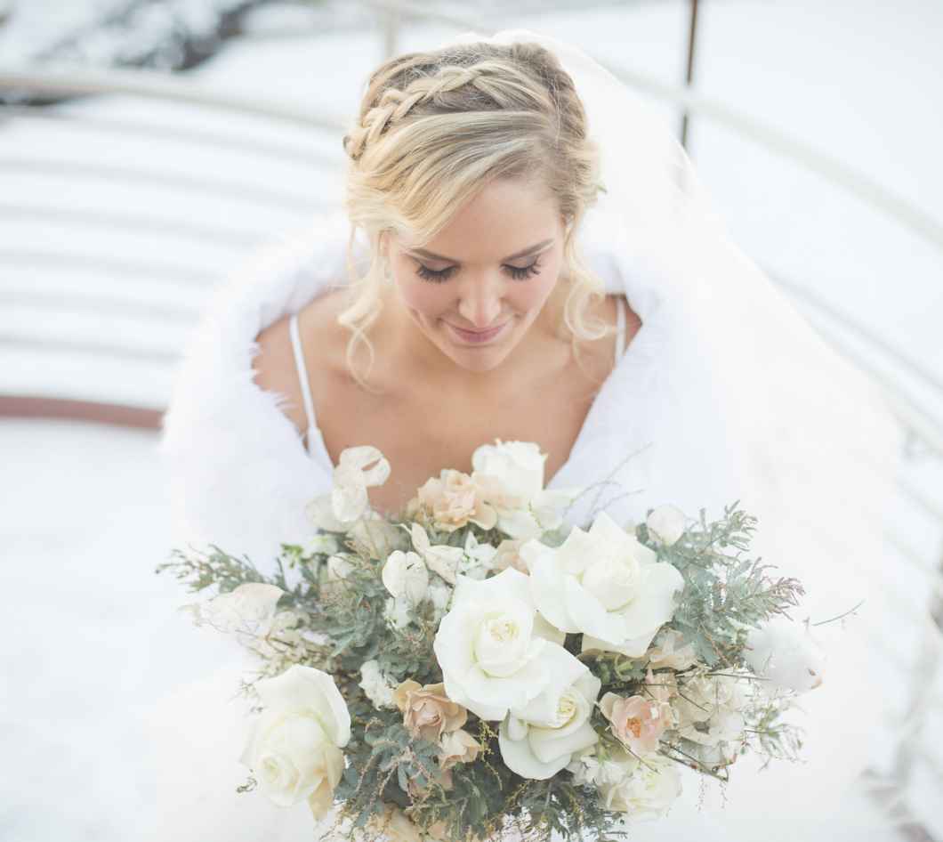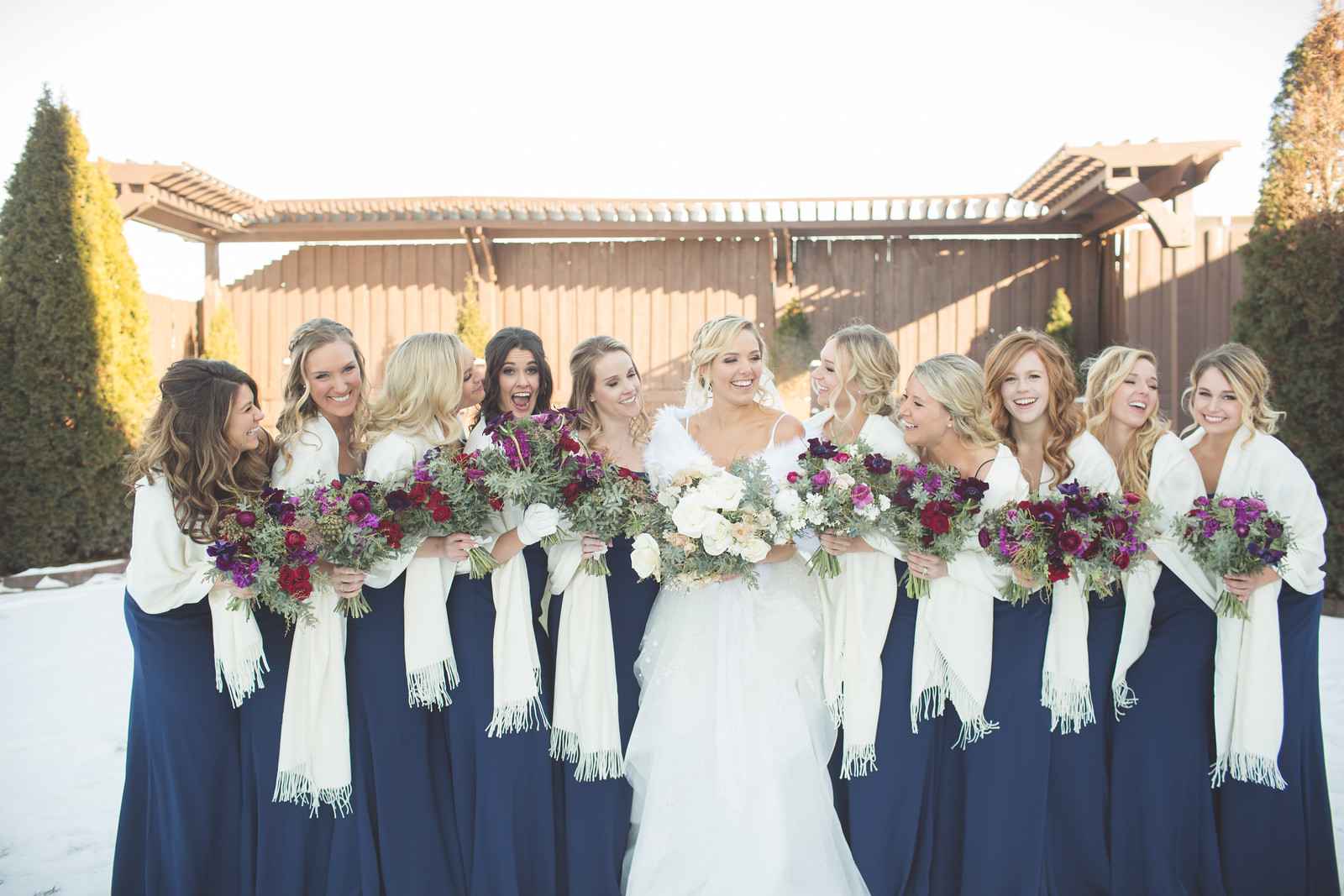 Catherine says, “I wish I would have told my bridesmaids to bring boots when we took pictures outside!! I felt so bad some of them were in open toe shoes in the snow. Luckily, my photographers were great and we were able to get a ton of group shots in less than 10 minutes! So for brides planning winter weddings, make sure remember that it is winter and to come prepared for outdoor pictures!”