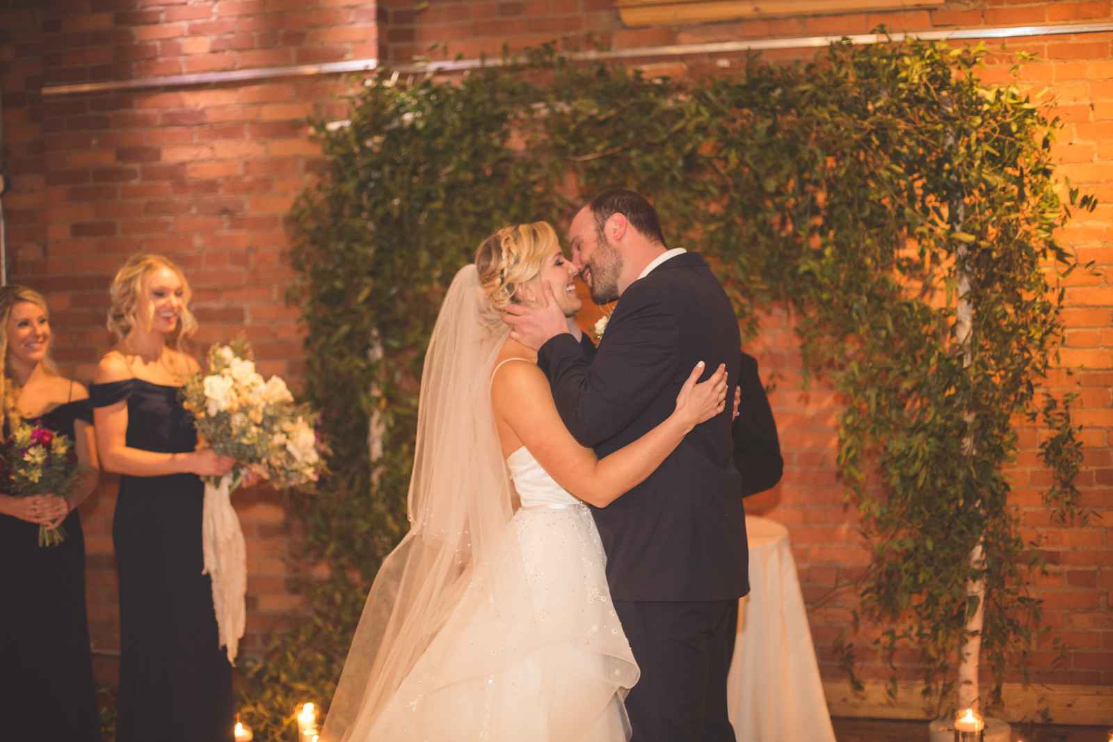 Catherine says, “The minute Brad and I entered the Mavris, we absolutely loved it. It definitely fit our vision for a winter wedding. We wanted a cozy, warm venue with wood floors, exposed brick and a space that we could do a lot with--and lots of candles! Aly was our wedding coordinator, and actually was the first person we met at the Mavris and gave us the tour. She completely sold us on the Mavris. We decided that day we wanted to book with them! We actually toured the venue on the day we decided to have our wedding the following year.