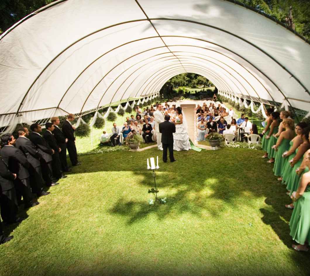 From the time Victoria was a little girl, she knew she wanted an outdoor wedding. "I fell in love with this place--it was very quaint, very beautiful," said Victoria. And on the particular day she chose for her outdoor wedding, it was also very hot--97 degrees to be exact. So Victoria and her bridesmaids, with the help of hair and makeup artists, battled the heat just to keep their hair from falling and makeup from running. While getting ready, Victoria remembers peeking through the tent to get a glimpse of Dane. "I wanted to see what he looked like," she said. "My sister kept teasing me that it was bad luck but I don't think so!"