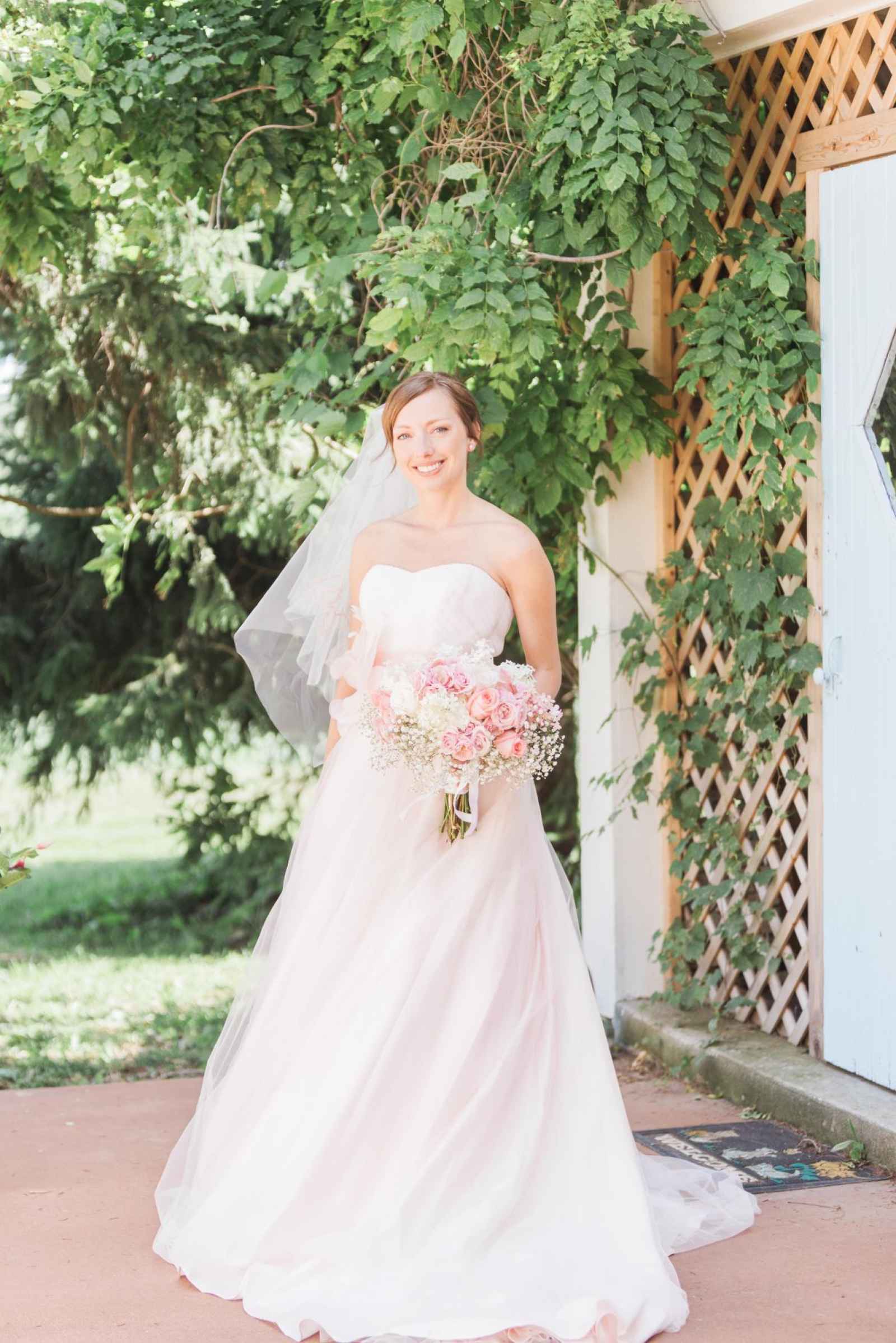 According to Natalie, their reception at Marian Hills Farm was a collaborative effort between friends and family. Her mother made the jars for the wedding favors including flavors of blueberry, strawberry rhubarb, peach and carrot cake. Natalie collected the vintage plates that were used in the towering centerpieces, and she also collected an arsenal of white milk glass vases used throughout the decor. The candy buffet displayed these vases and also showcased Natalie's mom's heirloom glassware.