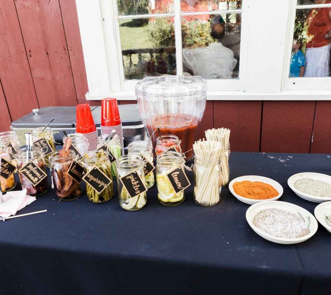 At Denis' request, all of the food from local restaurant 800 Degrees was made on site. Pizzas with Italian cured meat, pasta, salads, and cheese were a few menu items that showed up at dinner. Since Denis and Natalie love Bloody Mary's, a build-your-own Bloody Mary bar was incorporated. Also, in true Italian fashion, each table featured a bottle of red and white wine on it—all of the wine was shipped directly from Italy.