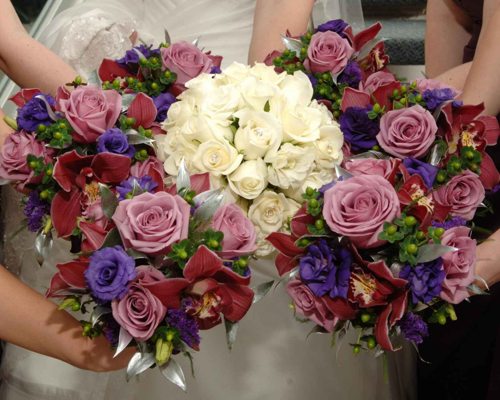 Alina recalls, "During the planning process, our roles were reversed. I was laid back about it all and Joe was definitely anxious about getting the planning complete. I had no distinct vision about my wedding day but with Anne's knowledge and patience, she was able to piece together my own personal style, exactly what I could not envision. When Joe and I arrived at the reception, it was as if a glimpse of heaven was created in order to allow us a moment to create the mood we wanted our family and friends to experience. Morris Park Country Club, transformed into a princess Ball, with sparkling silver valances, silver scroll linens and the accent of eggplant silk napkins, the exact shade of the bridesmaid's gowns, swirled around the deep lavender roses and lilies."