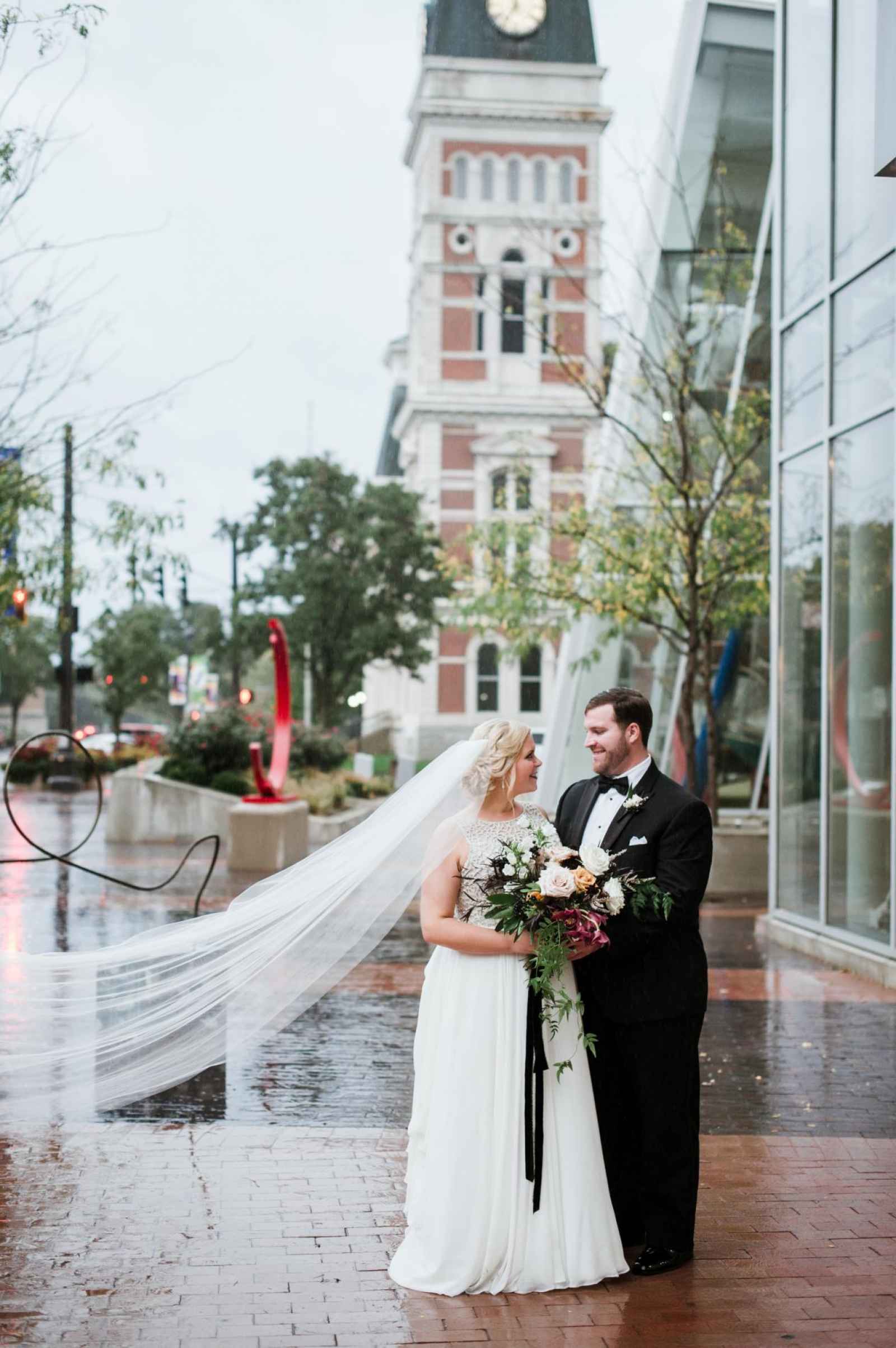The blend of modern architecture, older buildings and a small town feel were just the sort of things that inspired Jordan in Columbus, Indiana where she grew up. She explains, “We wanted something modern and different, yet elegant and romantic.” Not only was it important for Jordan to get married in the church she grew up in, she knew The Commons would provide a spacious, modern atmosphere with sleek lines and large windows.