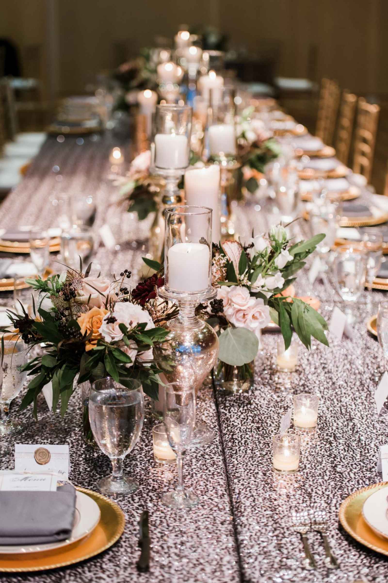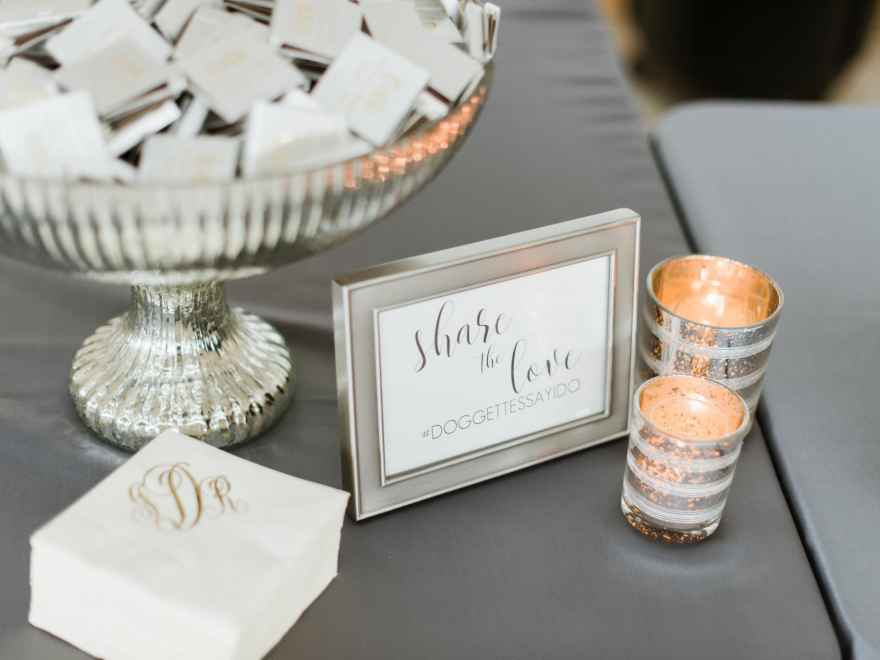“For our day, I wanted the vibe to be a blend of romantic, modern, whimsical, and traditional,” explains Jordan. “I saw a few pictures on Pinterest to get the process started, but that quickly became overwhelming! Therefore, once I had purchased my dress, it was much easier to tie things together! I'd say the reception venue and dress were my biggest inspirations.”