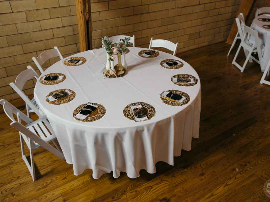 Sarah had a few wedding details pre-determined after her and Justin were engaged. By the time they set a date, they had only eight months to plan leaving little time to go back and forth on decisions. Fortunately, Sarah already had her heart set on a rustic barn wedding and she found her heart's desire in Sylvan Cellars in Rome City, Indiana. "I was obsessed with the chandeliers and wood! So classic and a perfect rustic backdrop for our traditional black and white theme," says Sarah.