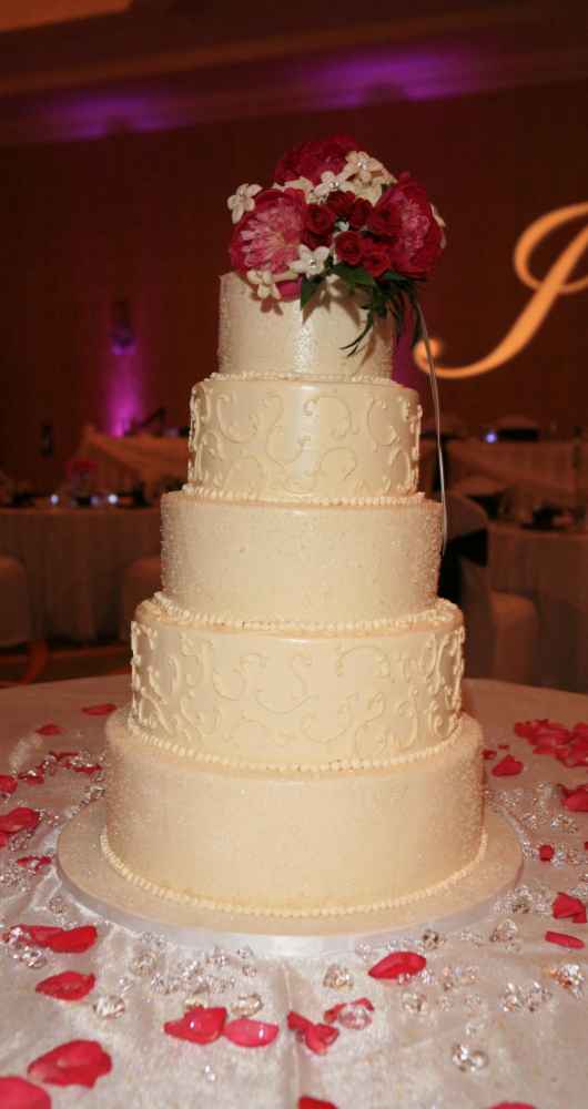After a touching ceremony, Sarah let her passion for pink shine once again, donning a special pair of pink heels just for the reception, held at the Marriott at Eagle Crest, a well-appointed, contemporary resort nestled on 135 acres of lakes and forests. "We wanted it to be classic, laid back, but still elegant," Sarah recounts, and to accomplish this, all of the small details were very important. Beautiful flowers placed in a hand-carved ice vase enhanced the entryway to the reception ballroom, and hand-made table numbers that sat among the fashionable floral arrangements on each table helped guests find their seats. After enjoying a classic sit-down dinner, everyone was treated to a wide array of decadent desserts, however, to be appropriately displayed and served, these sweet treats required a room of their own. As the celebration continued, some friendly football rivalry and accompanying fight songs livened up the crowd, perhaps most notably culminating with Sarah's garter, a one-of-a-kind composition, half Michigan, half Notre Dame. To cap this spectacular evening of food and fun, guests indulged in one last family tradition at the end of the night--homemade soft pretzels.