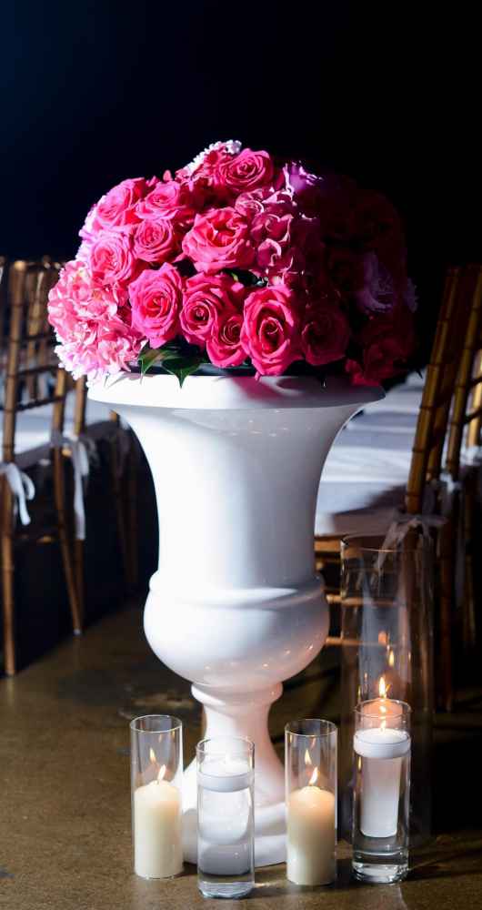 Sweet Pea Floral Design designed arrangements that reflected the couple’s desire for vibrant colors using garden roses, peonies, ranunculus, anemones, camellia and hydrangeas.