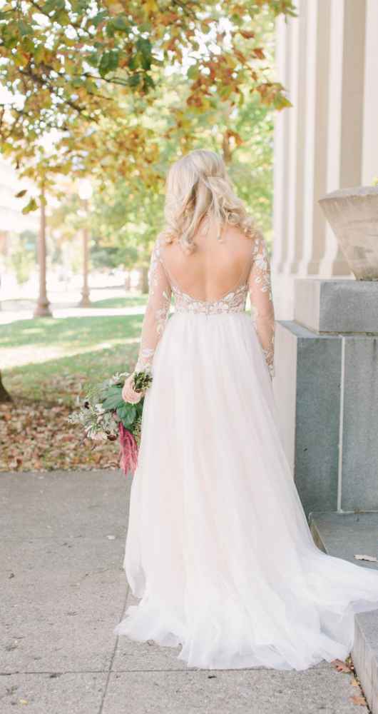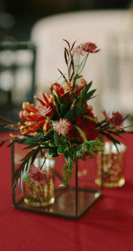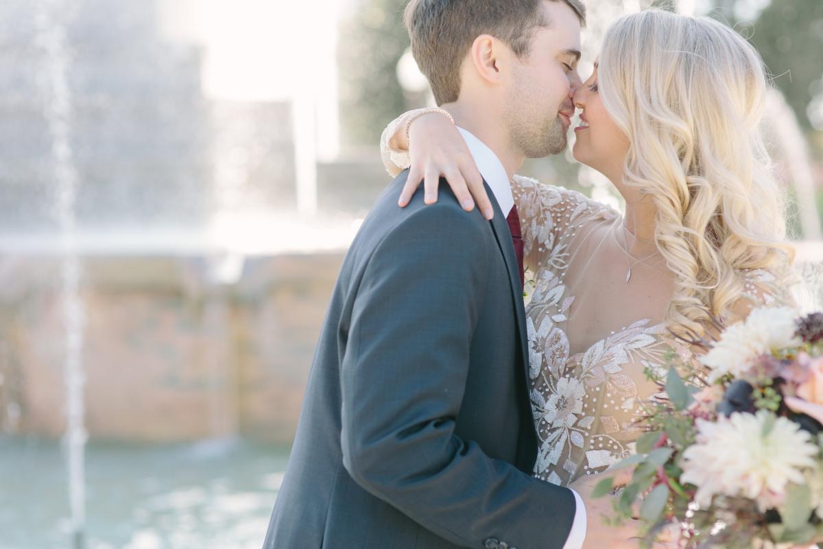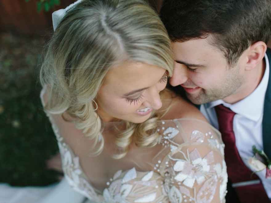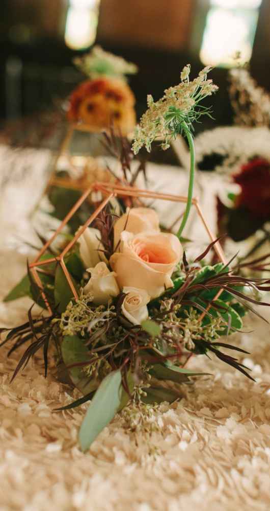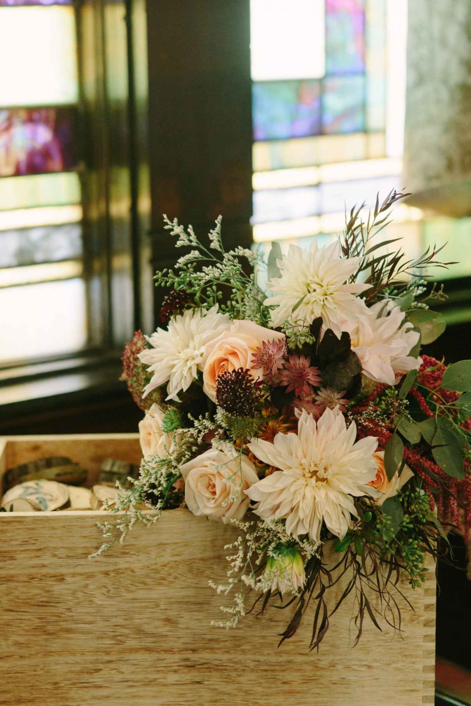 Jodie from Aisle Ready Events proved to be a big help for the long-distance planning, especially when it came to nailing down vendors. Although the couple knew they wanted a fun celebration, Jodie also helped in terms of the vision. Kayla says, “Jodie helped give some guidance on whether my ideas would work or not and threw out some suggestions based off what I had envisioned and pinned.” We think you’ll agree that the gorgeous peach and burgundy-inspired vision that resulted was a perfect palette for fall.