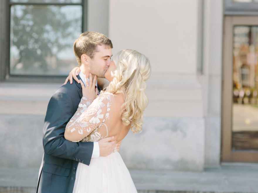 Kayla and Ryan began planning their Indianapolis wedding by securing their church. They then researched wedding planners, choosing Aisle Ready Events. “From there, it was a whirlwind of reception venue research followed by all the other vendors. All from six hours away,” Kalya says.