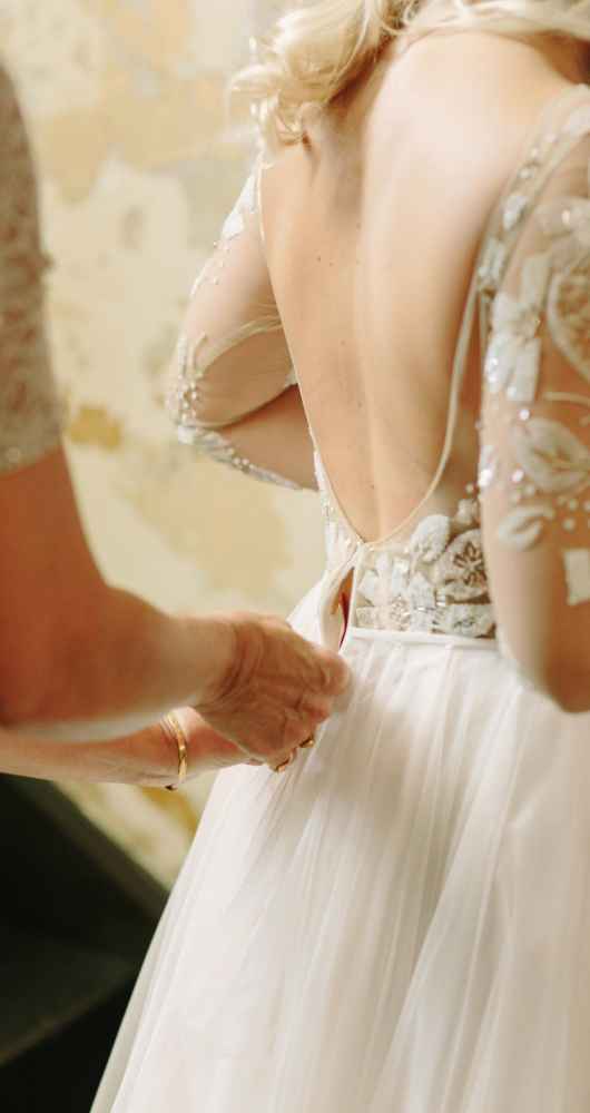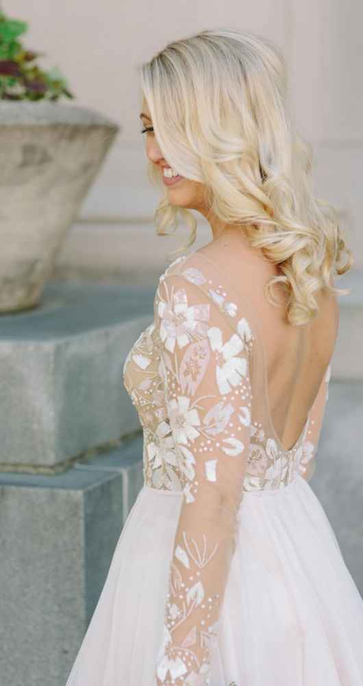 Kayla’s stunning Remington gown by Hayley Paige was love at first sight. “I tried on quite a few other dresses there and left without buying one but knew that the Remington gown was ‘the one’ when I couldn’t stop thinking about it all night,” she says.