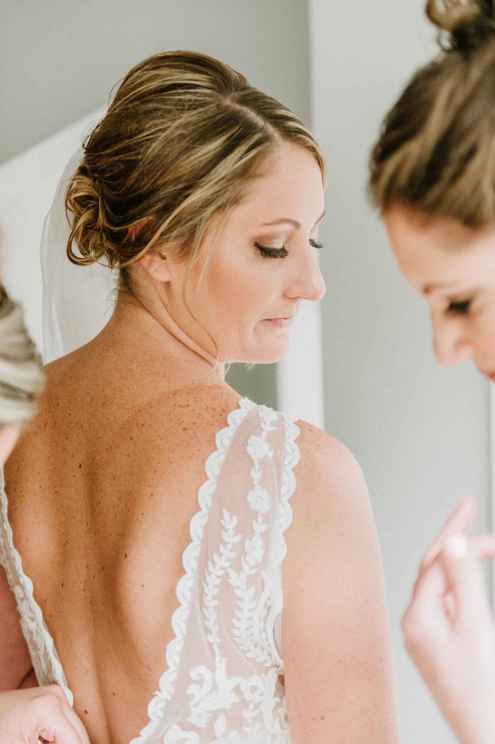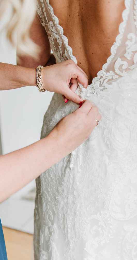 Kelly found her Maggie Sotero gown from Michelle’s Bridal and Tuxedo in Champaign, Illinois. Kelly says, “I was thinking A-line but tried on my dress and loved it!”