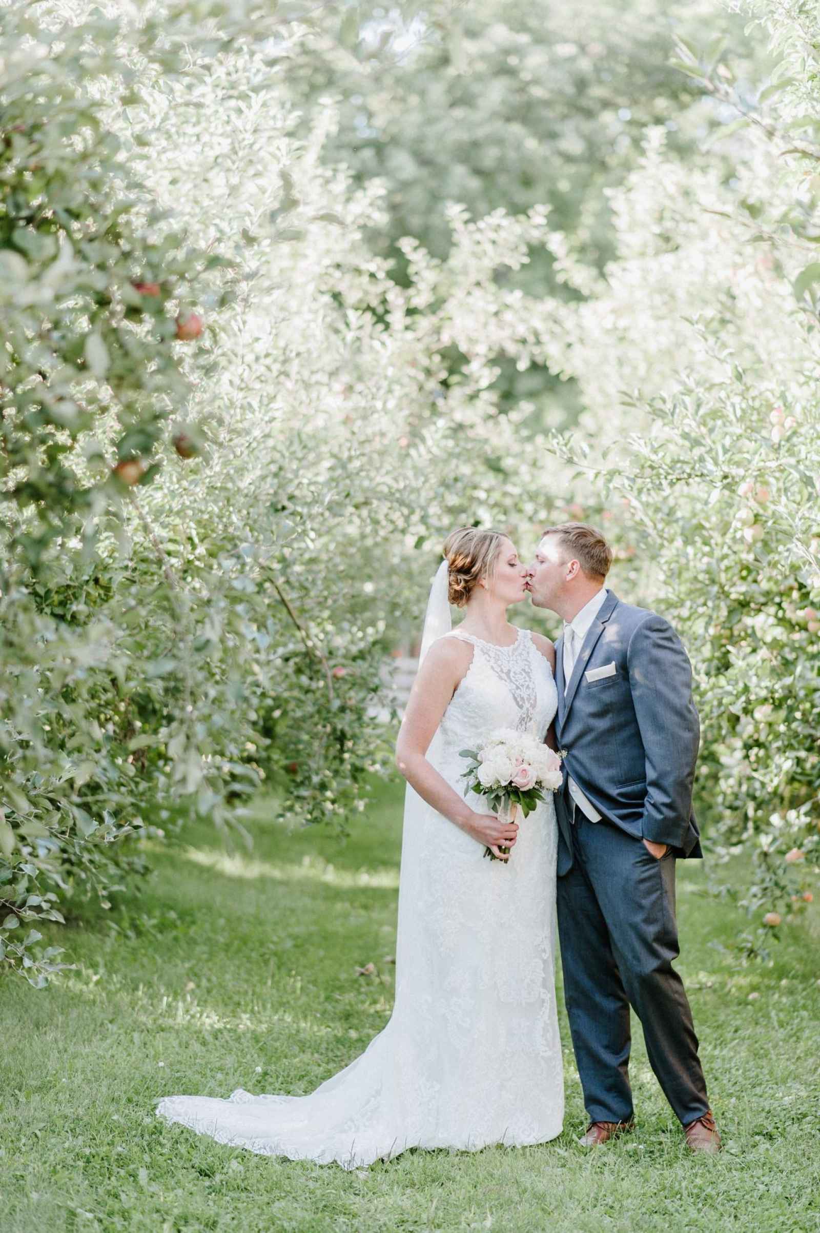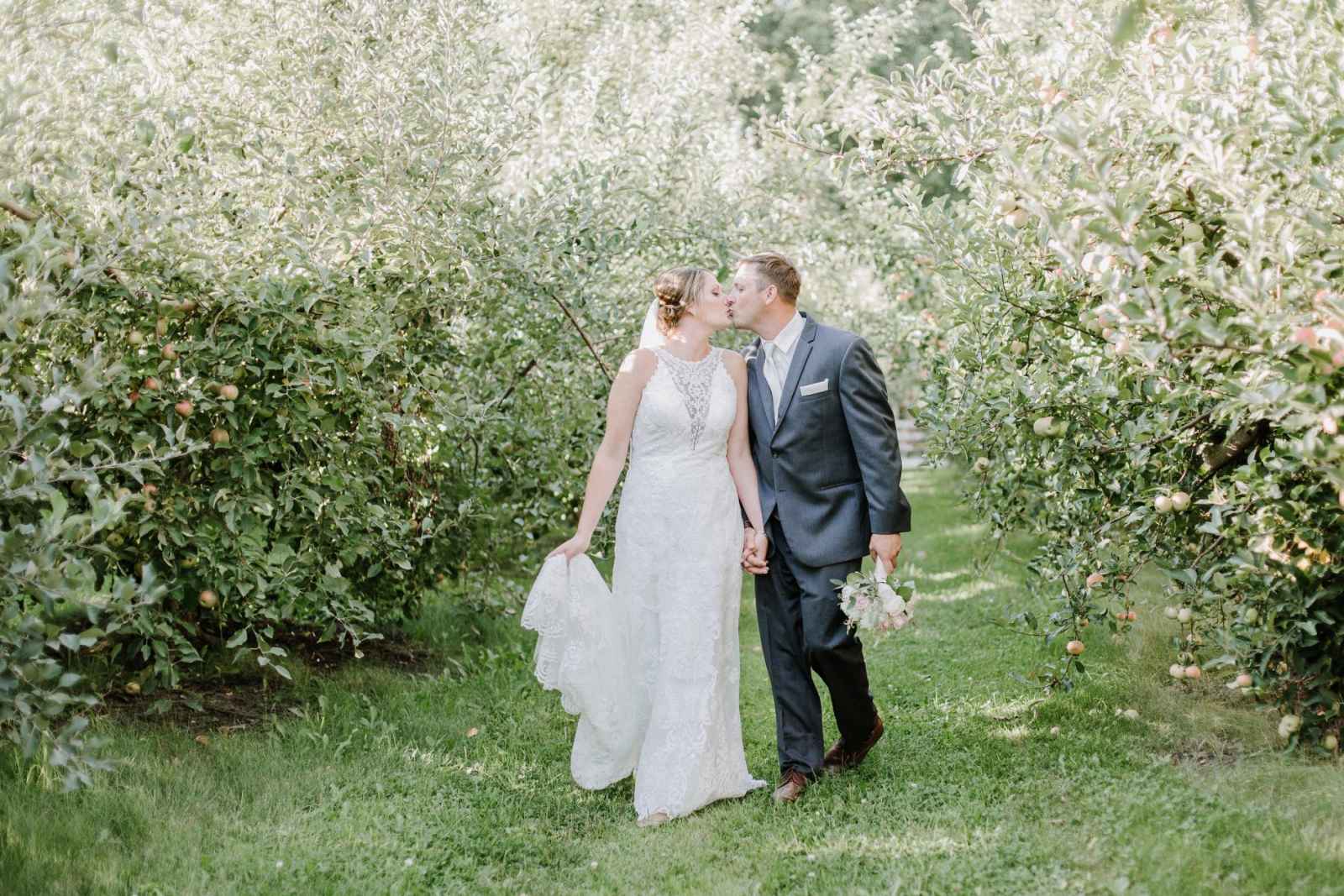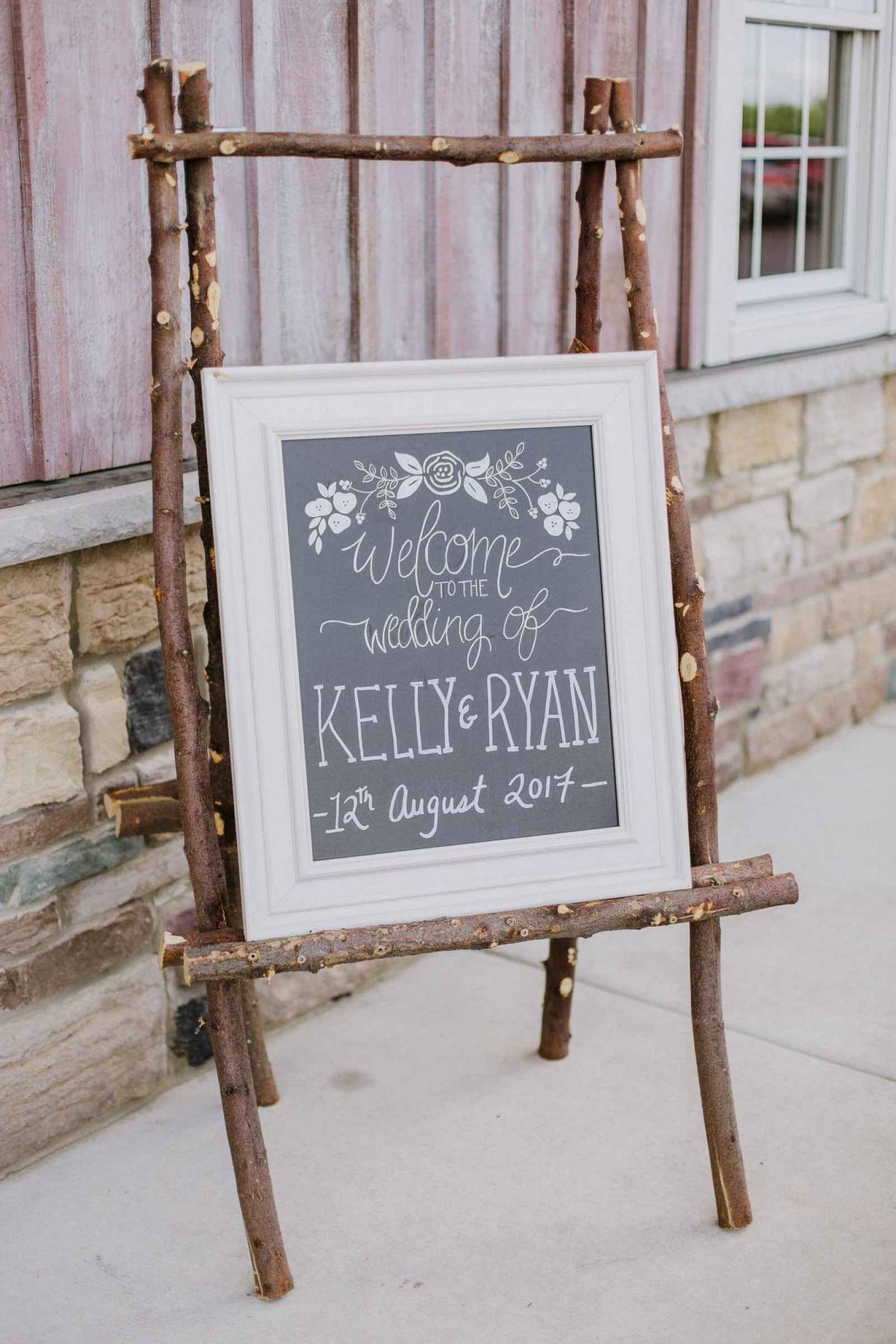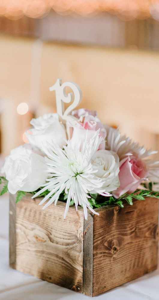 The decor was a true, team effort. Kelly and her friend made all the chalkboard signs and she also worked with Ryan to make all the centerpiece boxes. And as for the reception decor—they recruited a group of friends to go to the orchard. Kelly says, “They did awesome!”