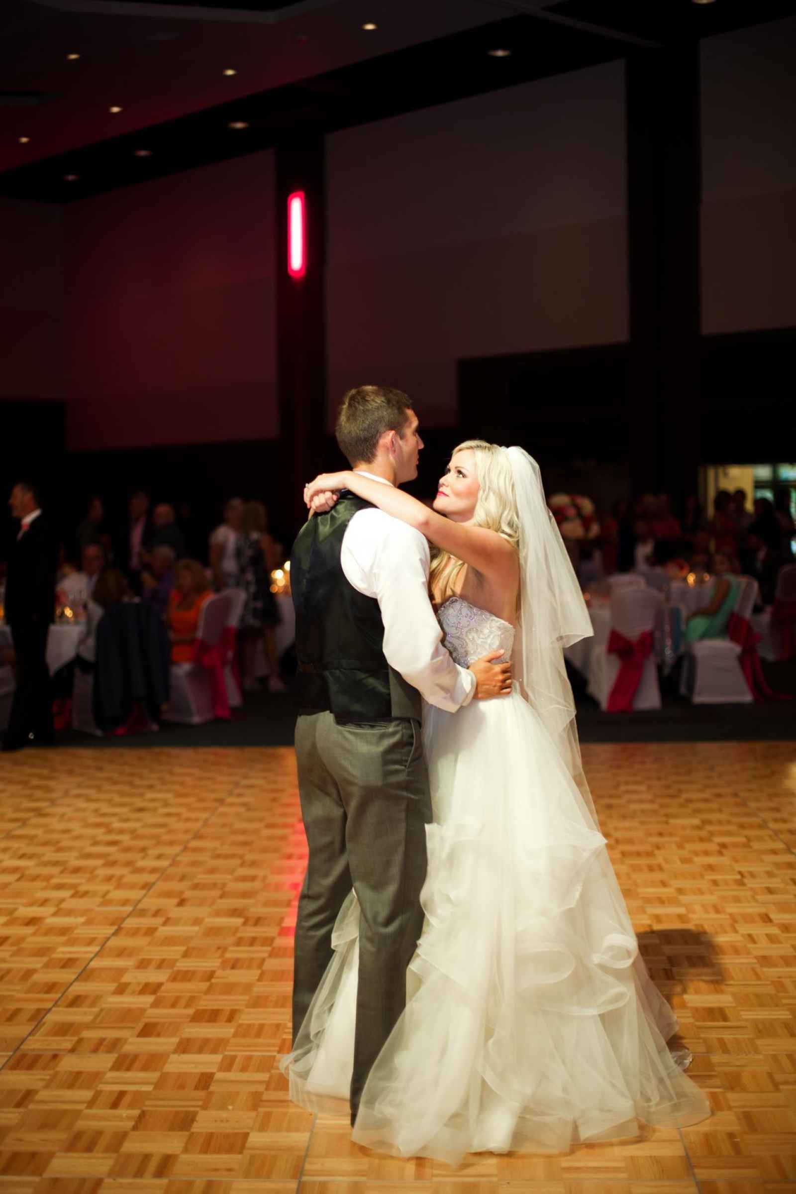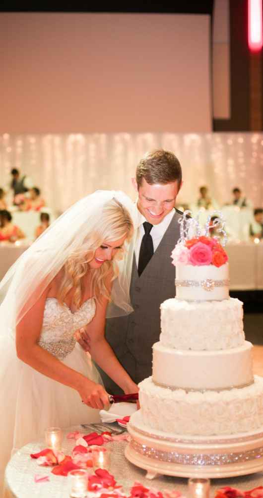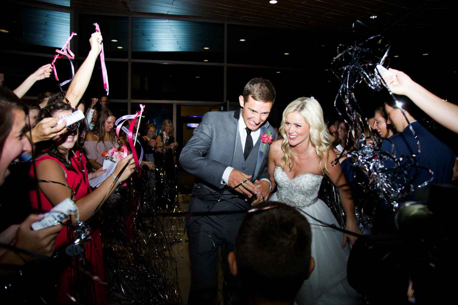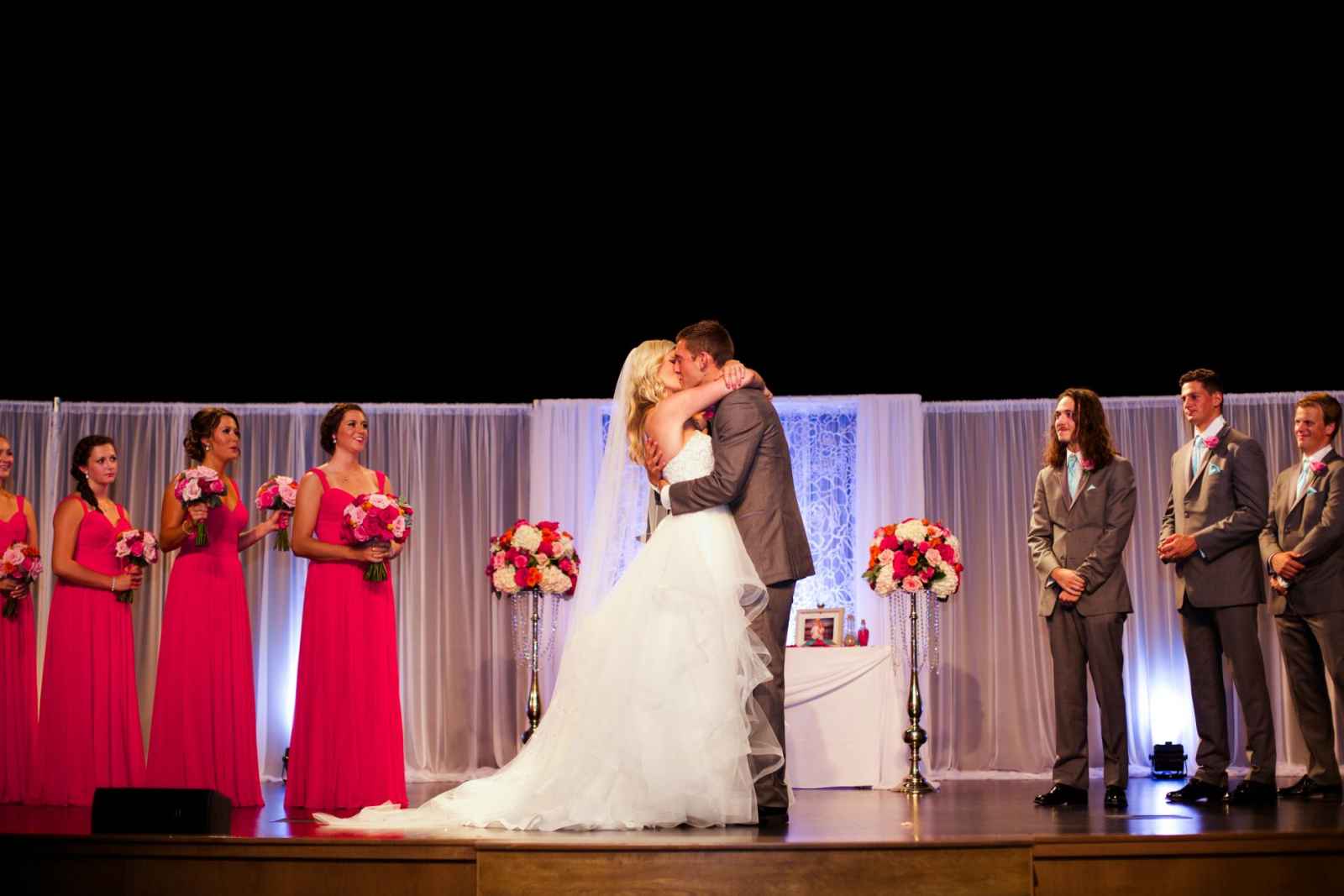 With an invite list of 500, Kelsey and Zach needed a venue that could hold that many people comfortably. “My mother-in-law suggested the Allen County Memorial Coliseum Conference Center, and when we visited, I fell in love with it. It was elegant and beautiful on its own, even without decorations,” says Kelsey.