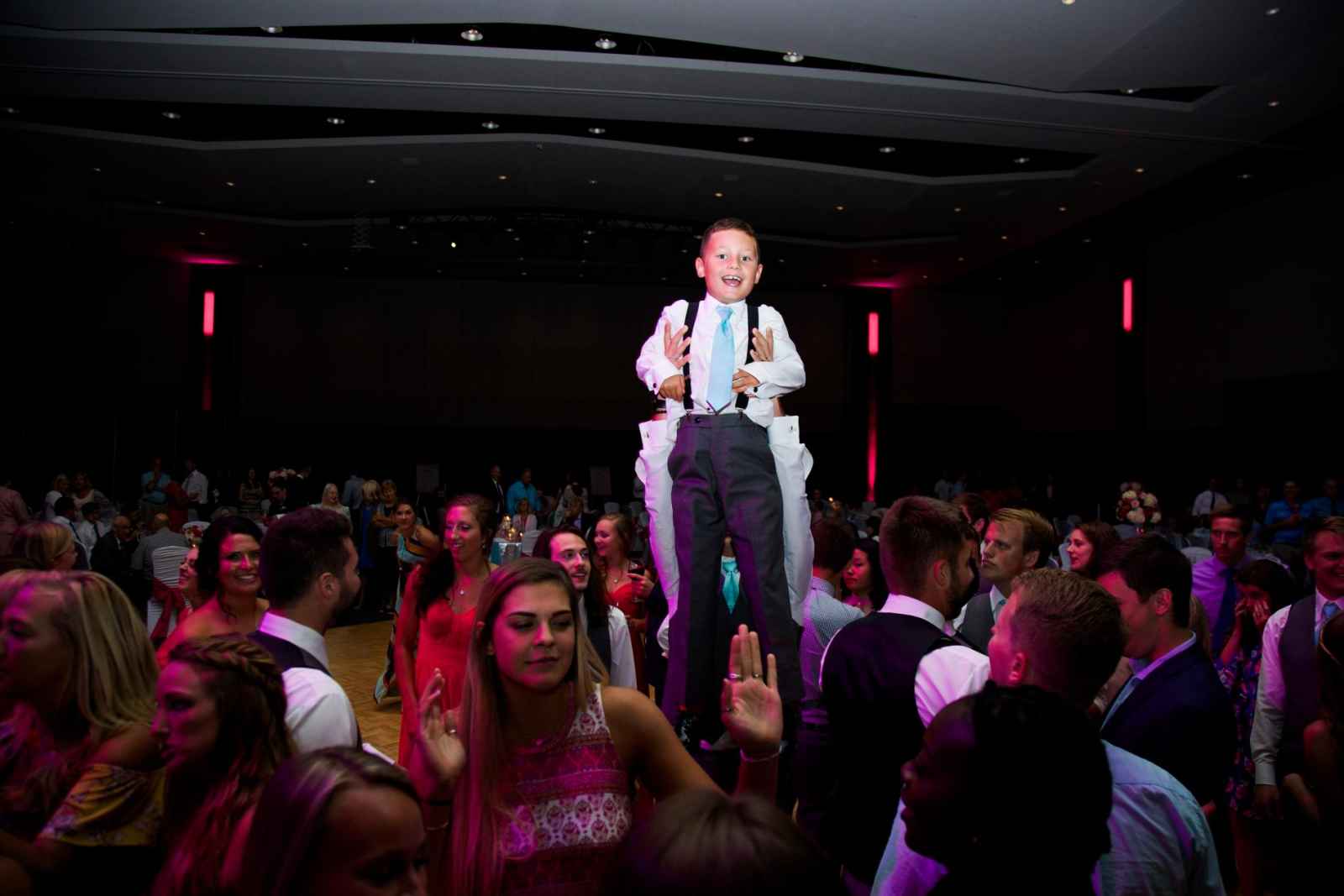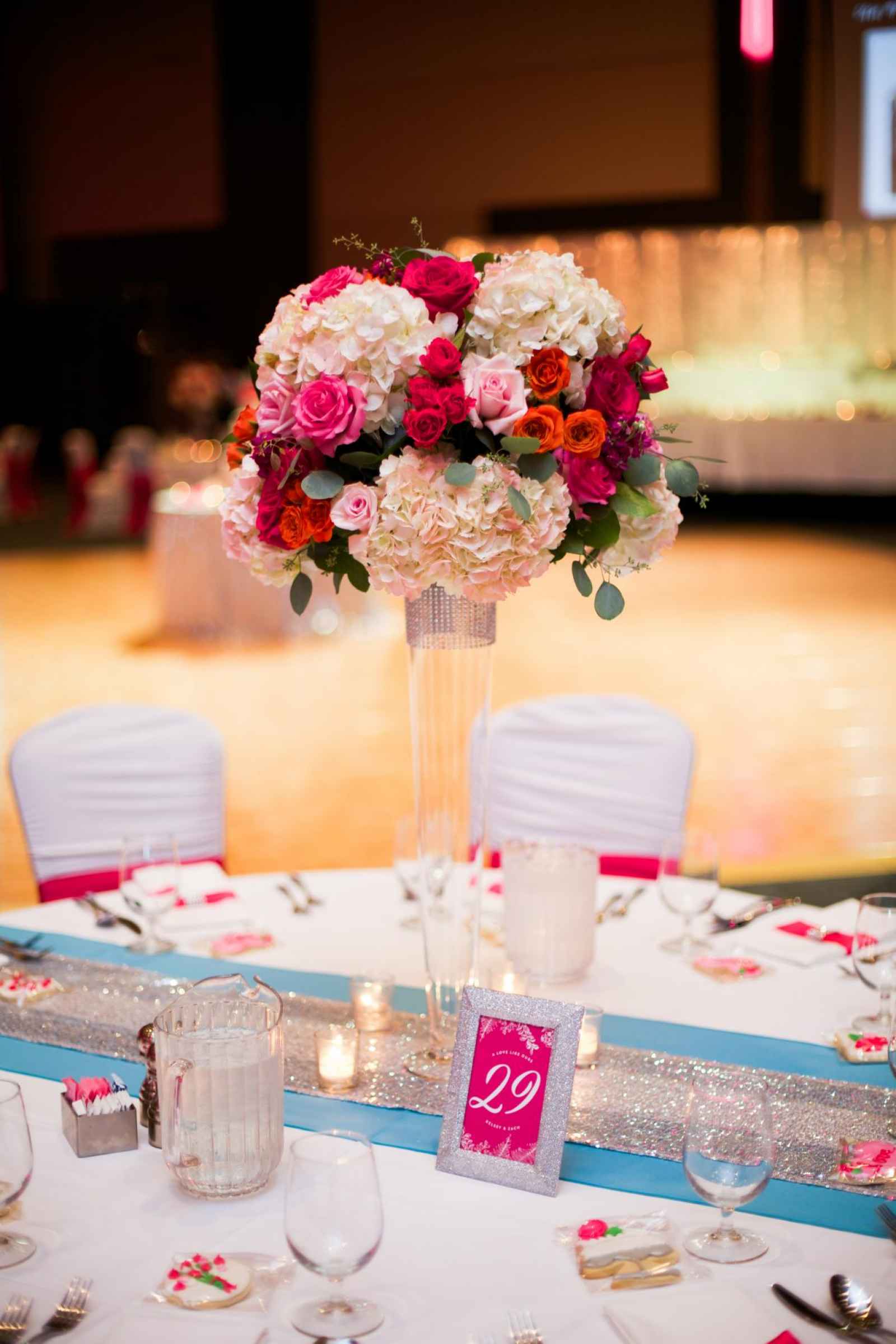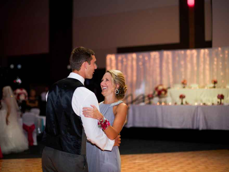 With an invite list of 500, Kelsey and Zach needed a venue that could hold that many people comfortably. “My mother-in-law suggested the Allen County Memorial Coliseum Conference Center, and when we visited, I fell in love with it. It was elegant and beautiful on its own, even without decorations,” says Kelsey.