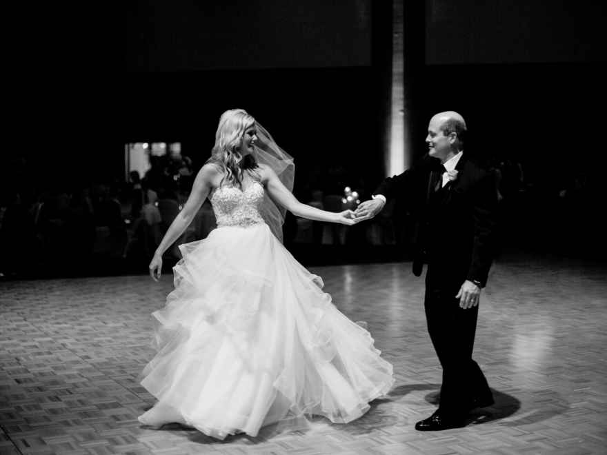Once the couple got back, the first thing they did was book their reception venue. While Kelsey had some ideas in mind, her must-have was a wedding that was both fun and sparkly. Kelsey was mostly inspired by her sisters, mom, mother-in-law and wedding planner! “Each of these women knew me well and were able to share inspiring ideas with me that they knew I would love,” she says, adding, “My wedding planner was incredible. She was by far the best planning resource we had. She created a monthly agenda of tasks that needed to be completed, and it made the planning process more organized and enjoyable.”