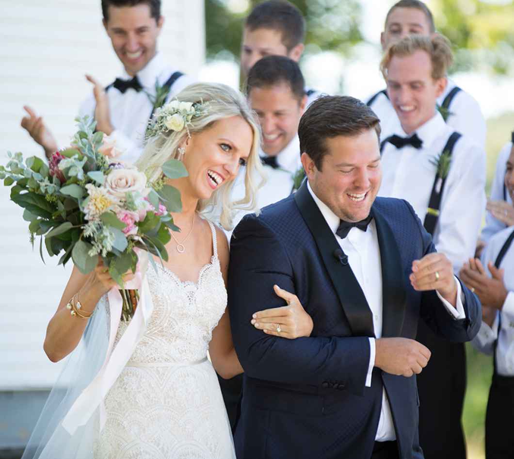 After awhile it became clear to Kevin that he couldn’t let Sarah go—so he decided to pop the big question. During a trip to Florida, Kevin brought a drone to the beach to capture footage. He asked a friend to take over the drone and started walking down the beach with Sarah. She adds, “While walking on the beach, he got down on one knee and proposed. We got the whole thing on video.”
