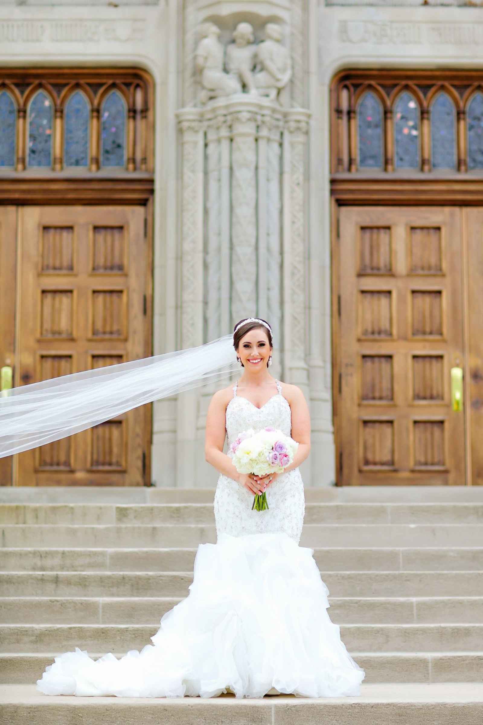 Megan and Evan enjoyed a long engagement, giving themselves time to celebrate before the planning started. Megan is really close with her mom, so she became her go-to person for all the planning. The couple started with choosing a venue—which turned out to be The Scottish Rite Cathedral (a place that they had passed during that carriage ride the night Evan proposed!). Some things are simply meant to be! Megan knew it was the perfect place, too. “We loved that it lights up at night and we knew that the ballroom was the perfect place to make our fairytale wedding come true," she says.