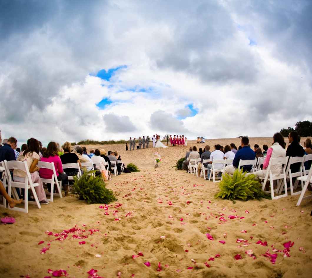 The realization that the crash could have been much worse put everything into perspective for the couple and their families. On their wedding day, Scott and Caisha didn't mind the August 22, 2009 forecast called for wind, rain and temperatures in the 60's at the Washington Park Beach in Michigan City. The entire wedding party braved the elements, walking down the aisle barefoot. Instead of the traditional unity candle (which wouldn't have worked in the wind anyway) the Moyers had a sand ceremony. Their mothers poured in black sand, Scott poured green and Caisha poured pink to create a beautiful design they'll cherish forever.