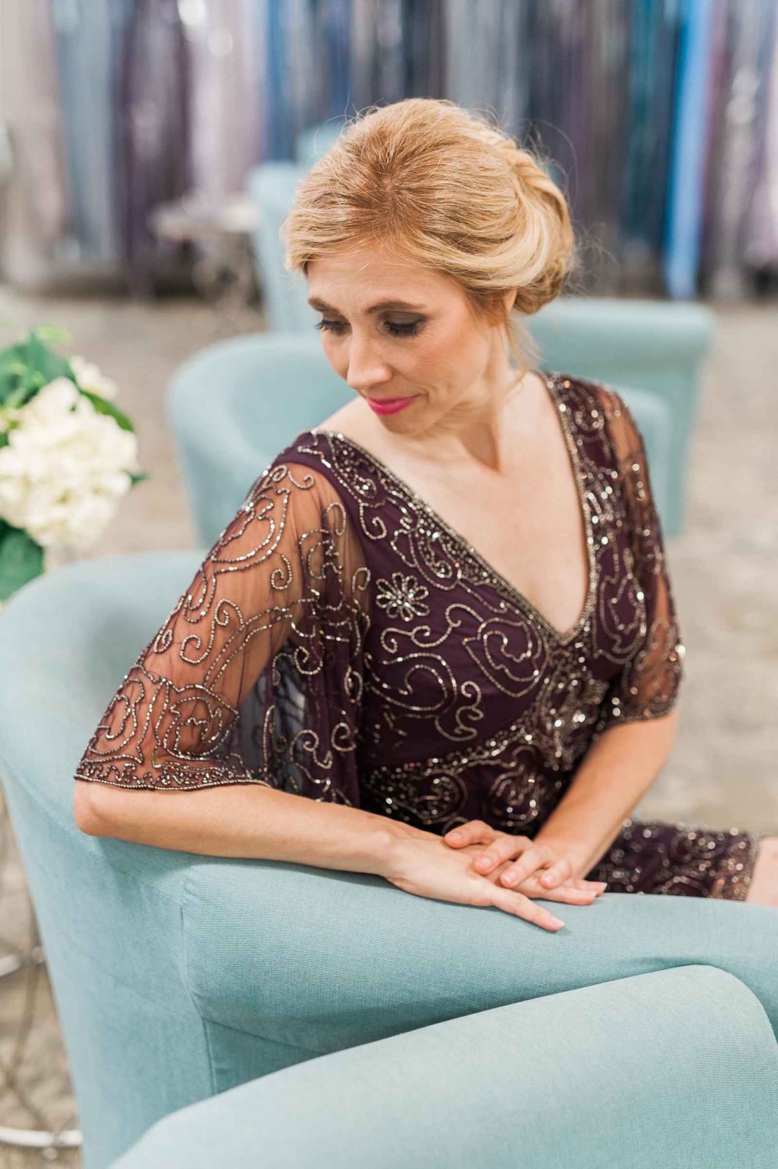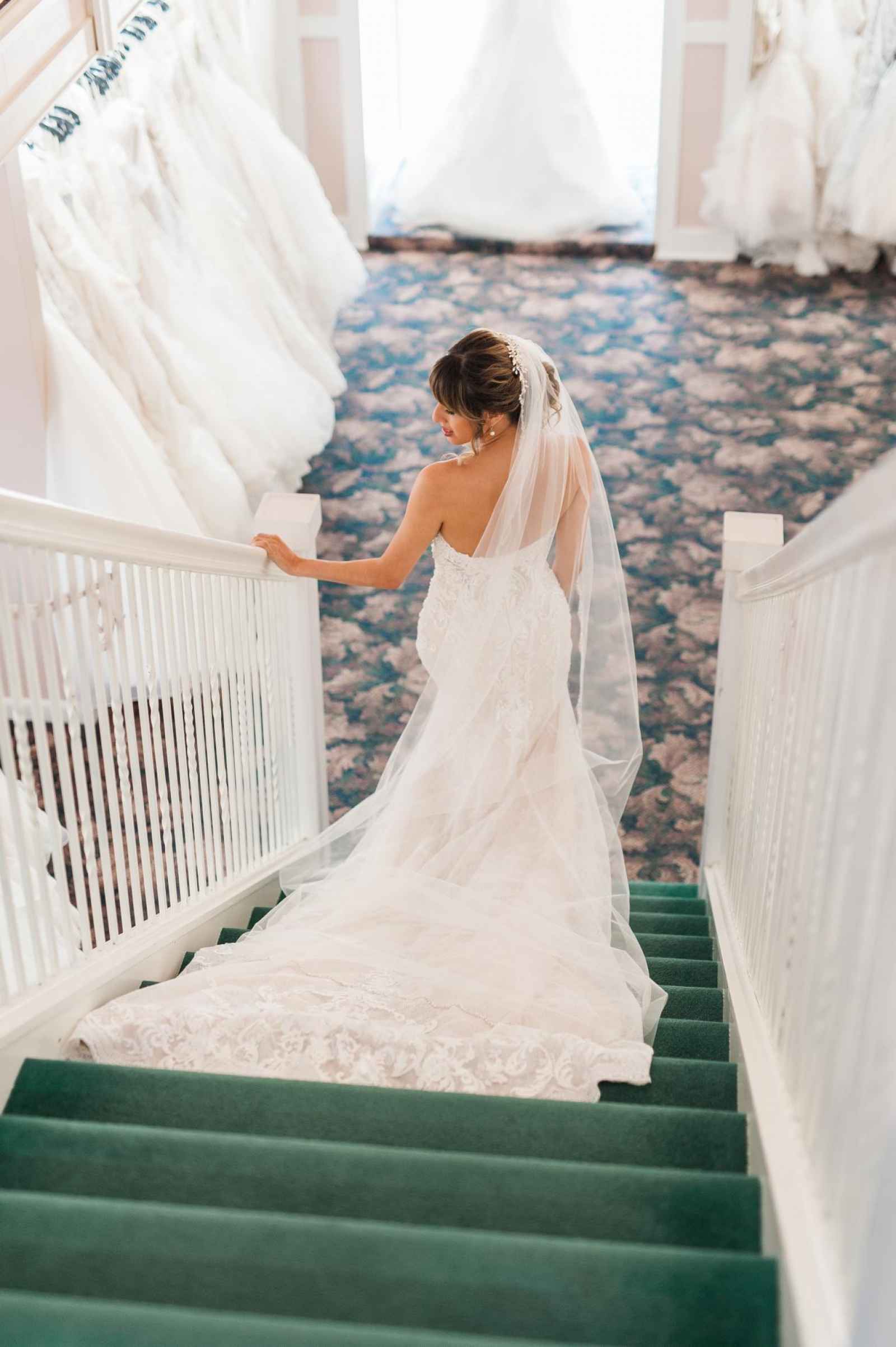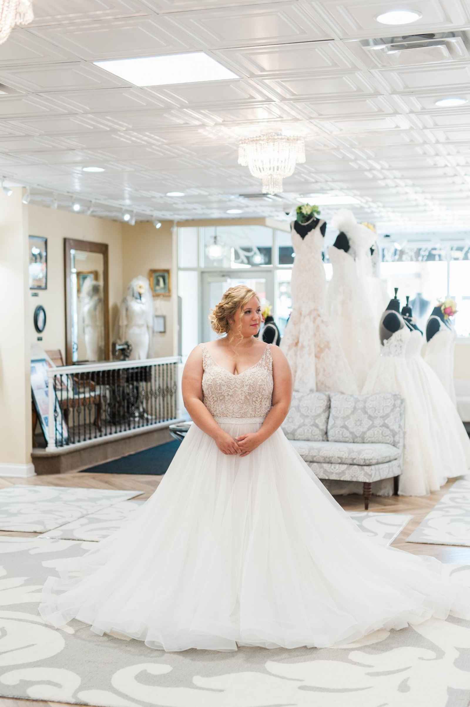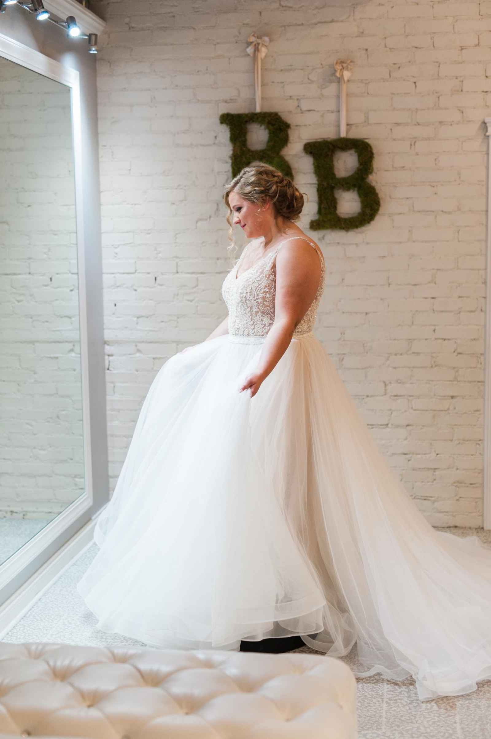Although Becker’s is rooted in history, their salon hosts a modern, chic style that warmly invites you in the moment you step foot inside their salon. This three-story-tall and three-store-fronts-wide salon beckons brides. Highlights of Becker’s space include large, floor-to-ceiling mirrors, pedestals in front of every mirror, comfortable seating for the bride’s party and large changing rooms that allow brides the space to privately look over their dress selections. Alyssa says, “We have recently renovated our bridal salon and exclusive Mother’s Studio across the street to have 20 fitting rooms, two viewing rooms, and various specialty lighting to really show off our designs!” This new remodel means that Becker’s brides are not stuffed into cramped areas to hurriedly try on gowns surrounded by strangers, rather they are given room to look over the details of every gown they try on and talk about the dress with their consultant. Becker’s also has a Mother’s Studio where mothers-of-the-bride can find an exclusive selection of dresses and experience the same fantastic personal care a Becker’s bride receives. Not to mention, their outlet store is perfect for finding bargains or even special event dresses related to the wedding like the rehearsal dinner or bridal shower.