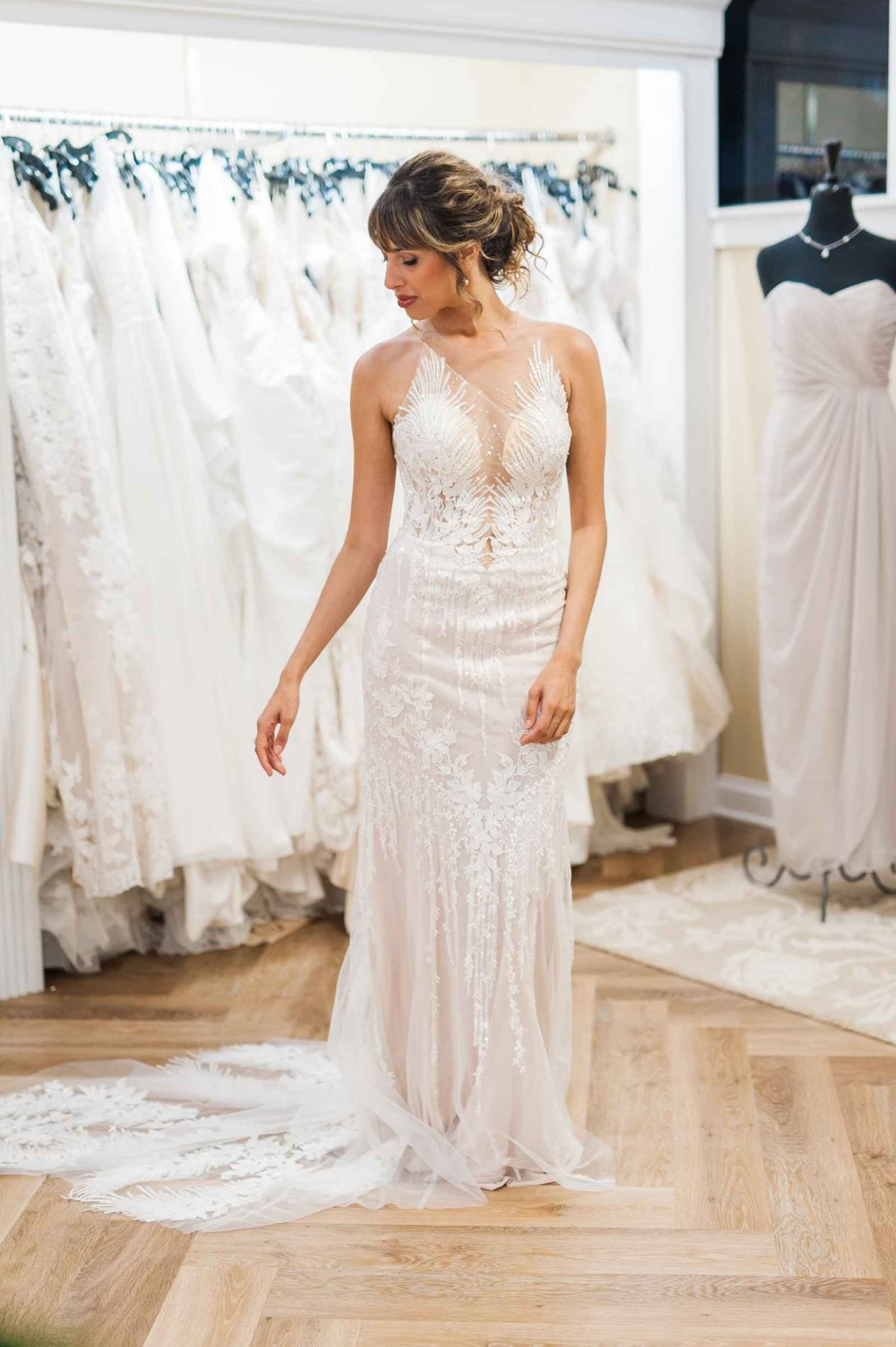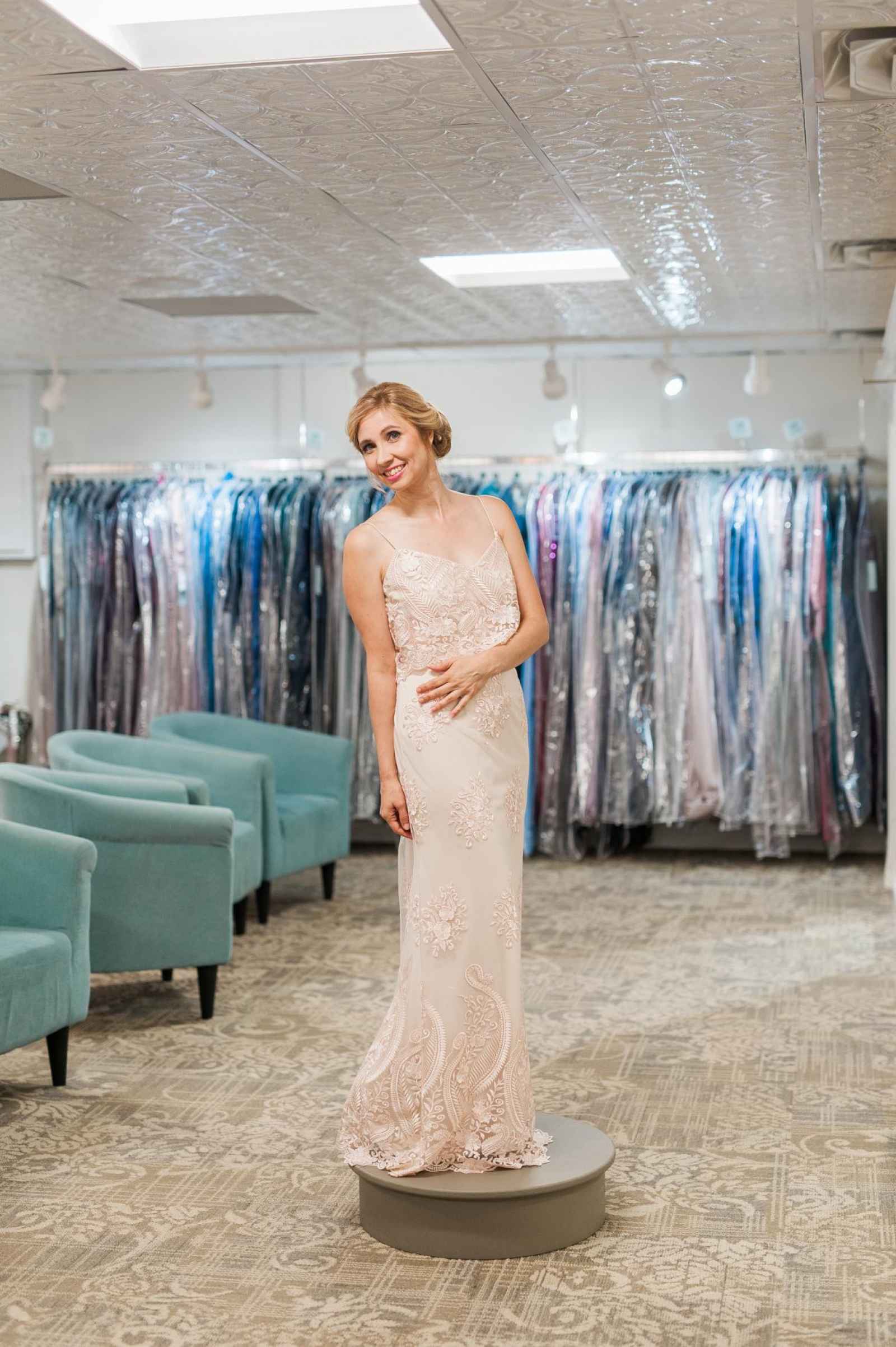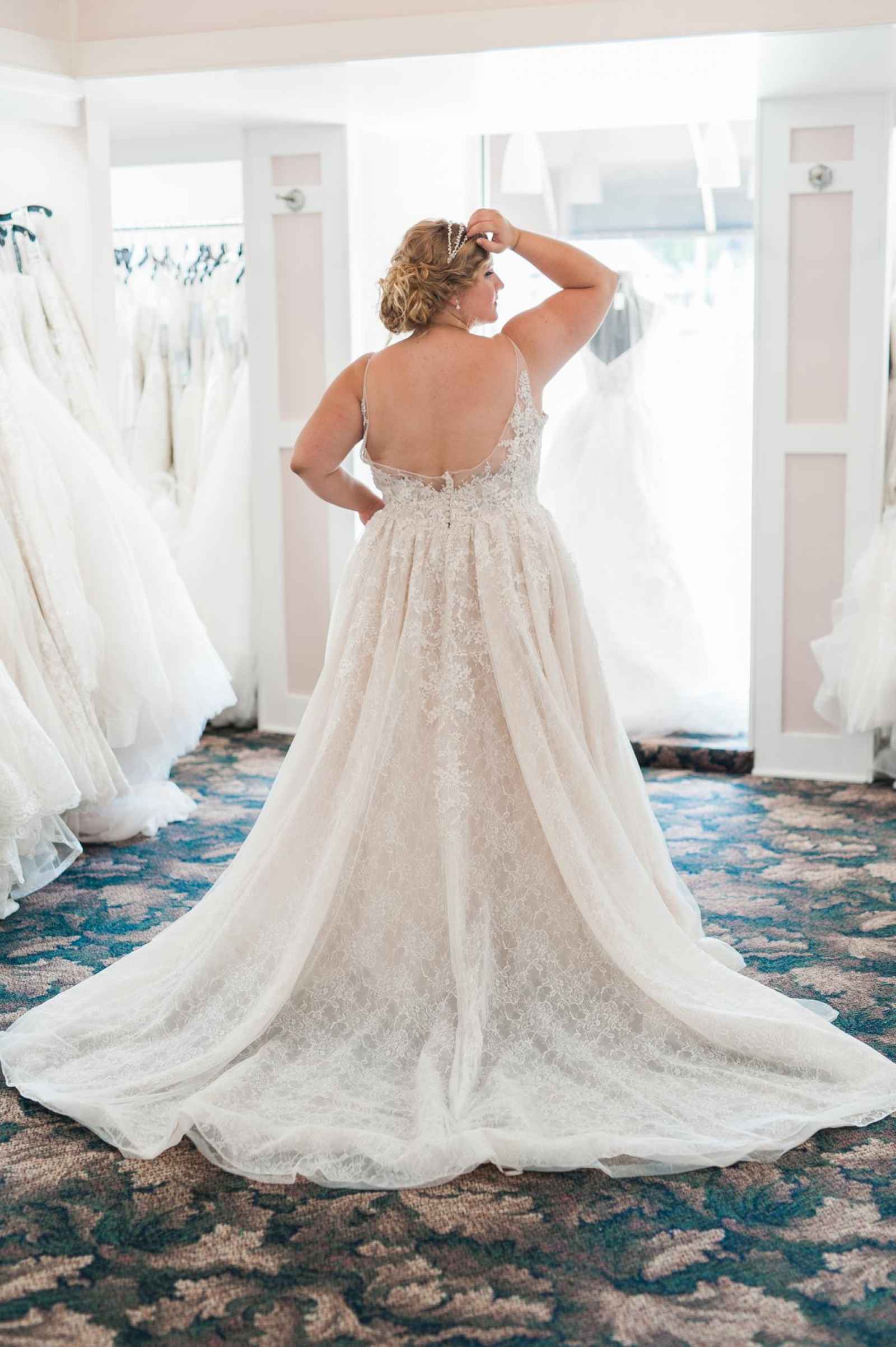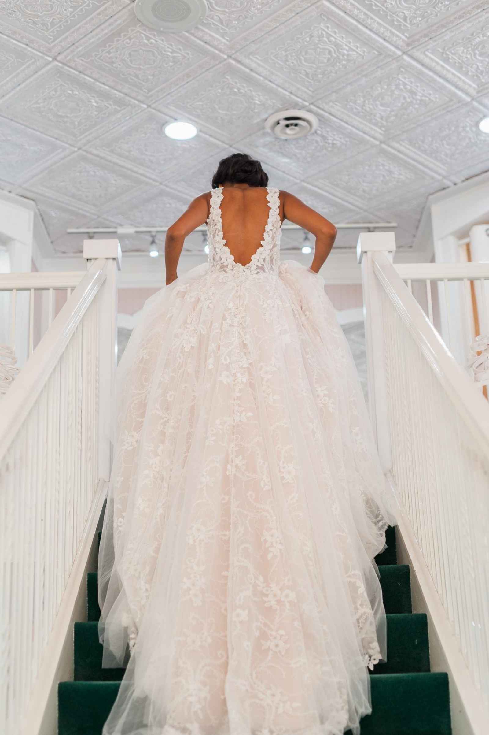 One of Becker’s most special features is their famous Magic Room. Alyssa says, “It is a 360 degree room of infinity mirrors and soft lighting so the bride can really envision herself in the special moment of wearing her gown on her wedding day.” All the elements of this room let a bride feel like true royalty. It offers endless reflections of the bride in her gown that assure her she looks beautiful from every angle. Better yet, the Magic Room’s ambiance creates a feeling of serenity letting a bride know she has found the one.
