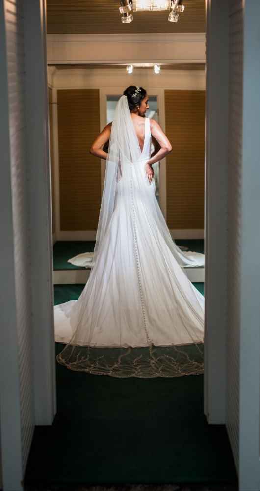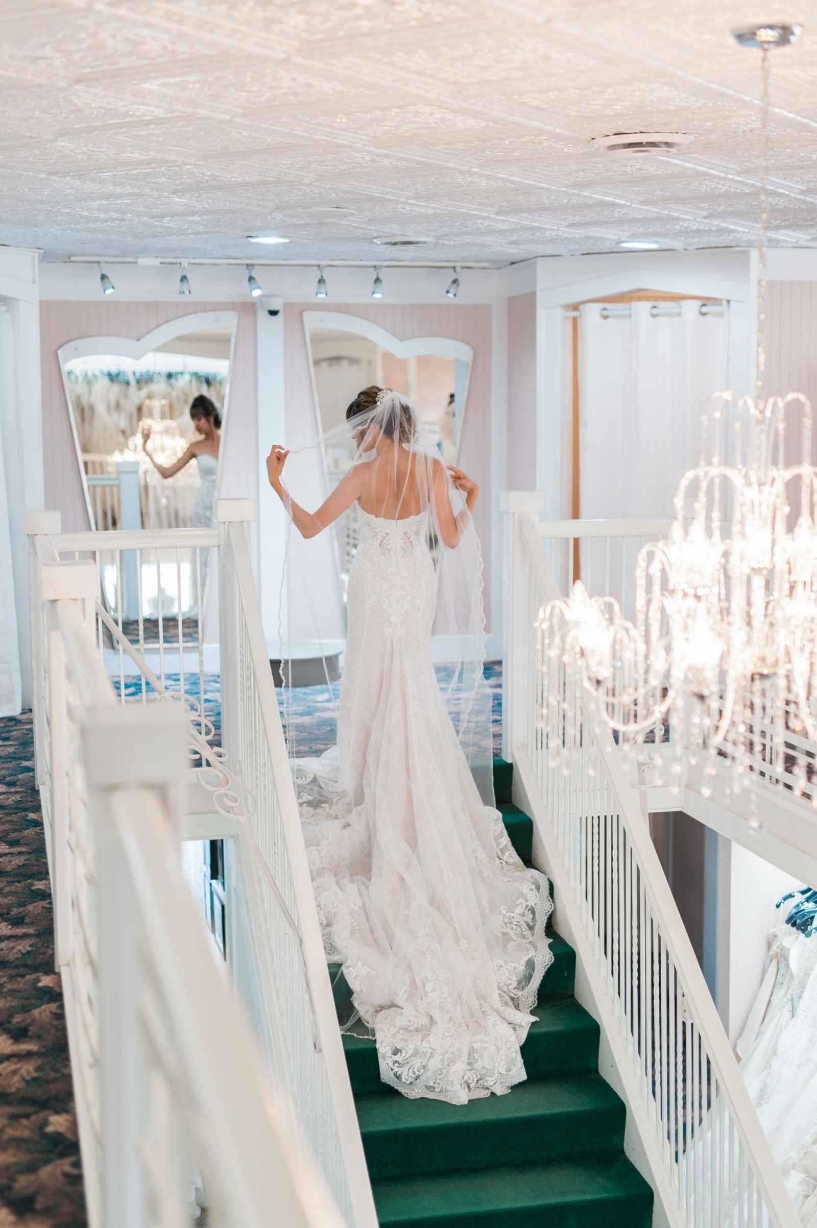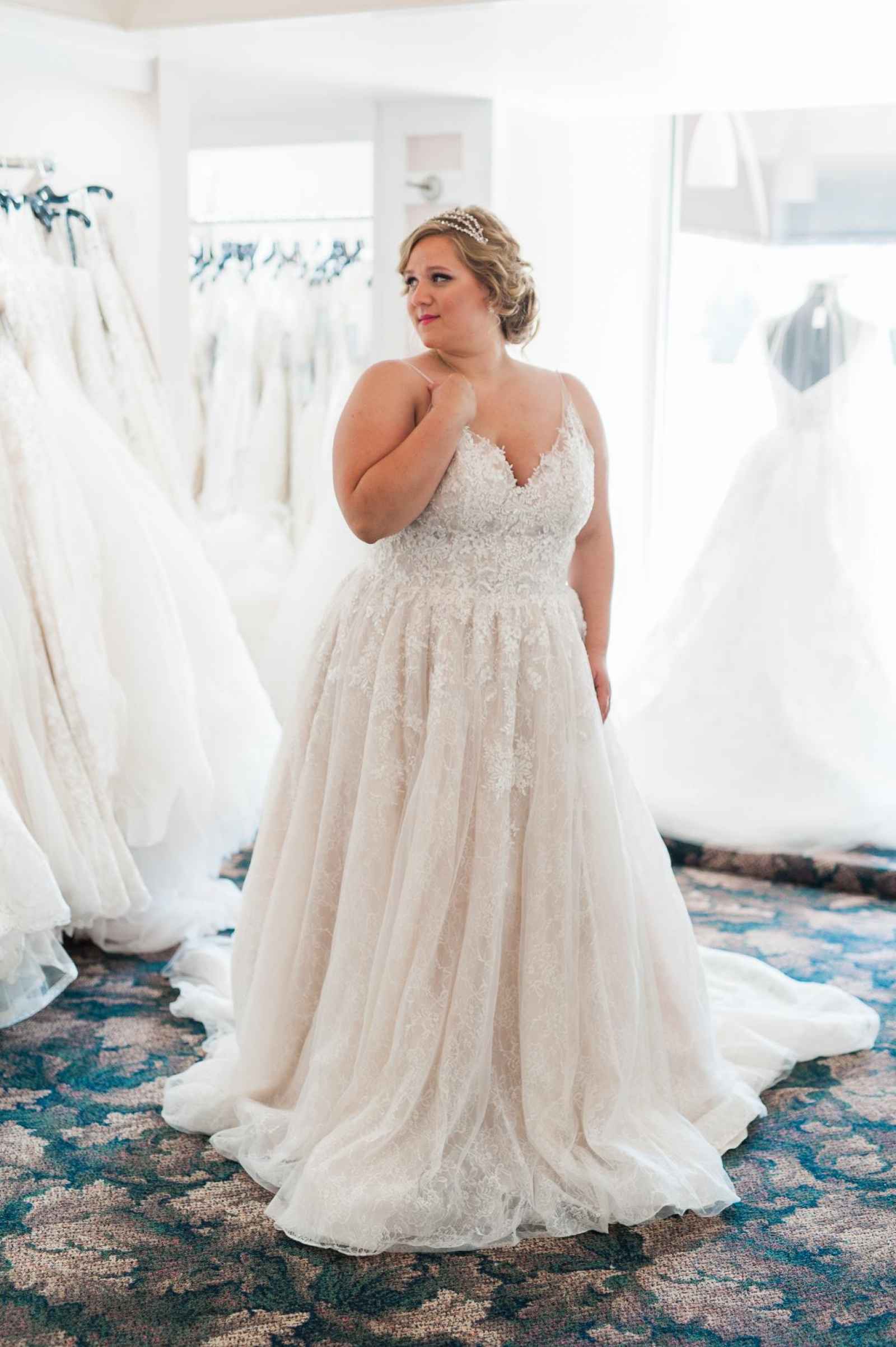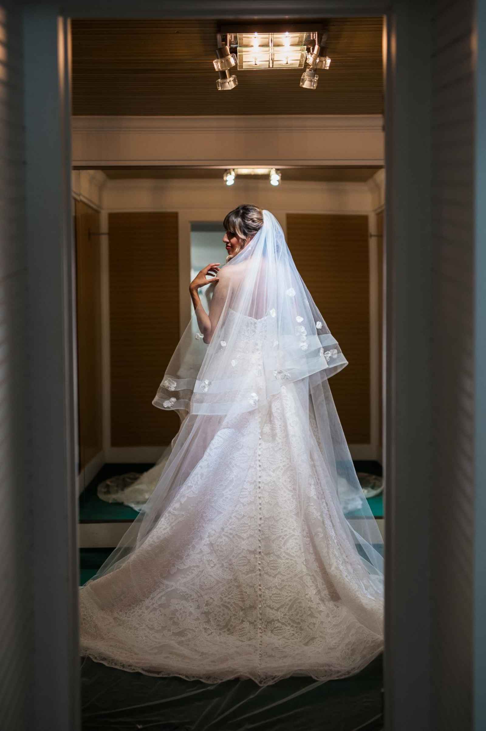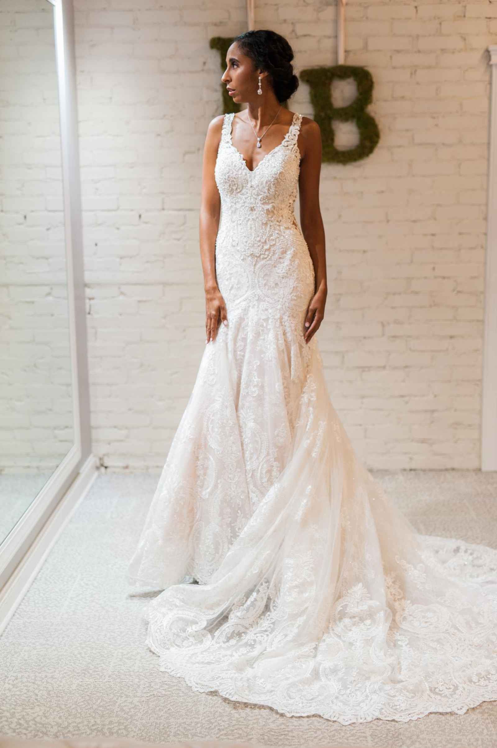 One of Becker’s most special features is their famous Magic Room. Alyssa says, “It is a 360 degree room of infinity mirrors and soft lighting so the bride can really envision herself in the special moment of wearing her gown on her wedding day.” All the elements of this room let a bride feel like true royalty. It offers endless reflections of the bride in her gown that assure her she looks beautiful from every angle. Better yet, the Magic Room’s ambiance creates a feeling of serenity letting a bride know she has found the one.