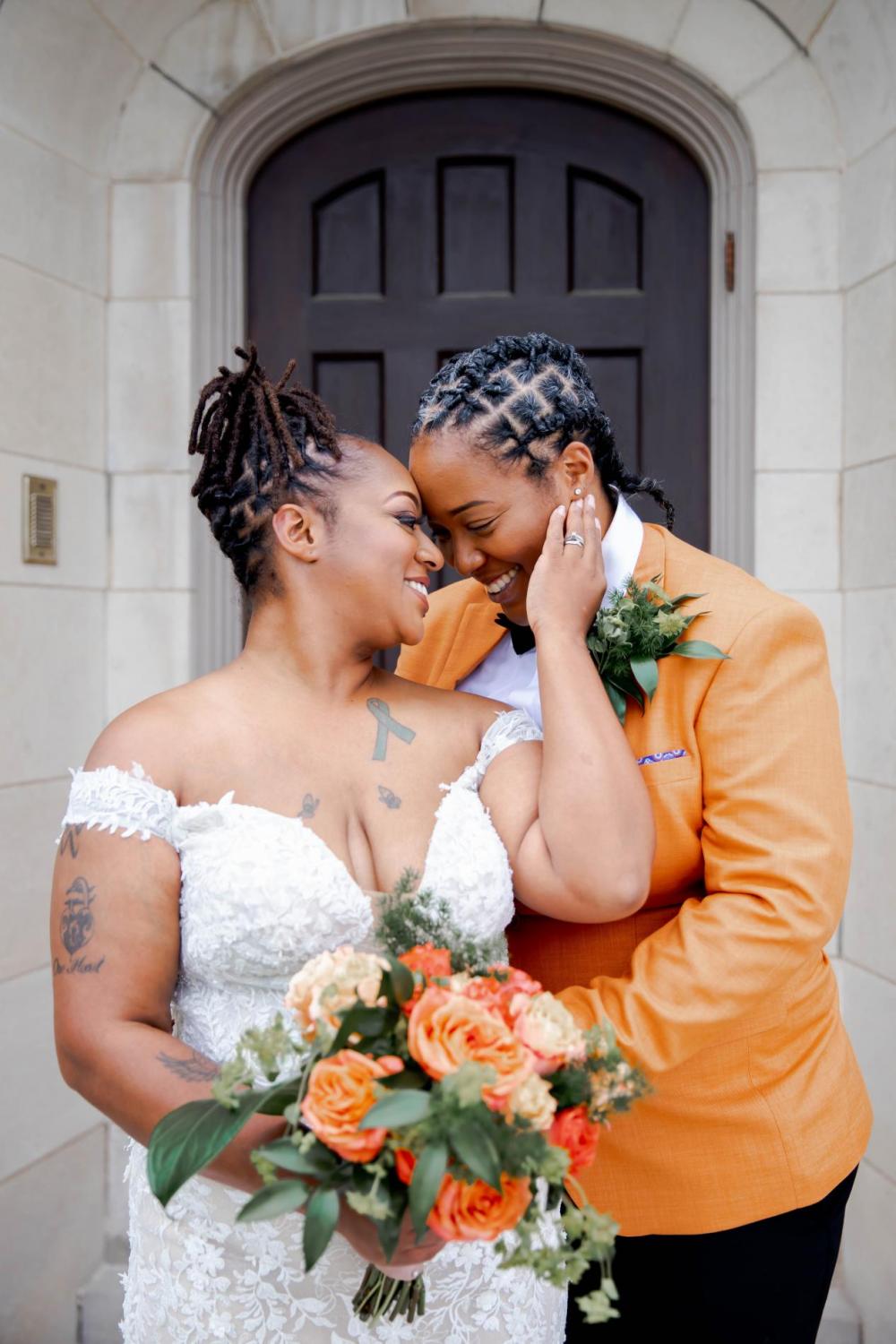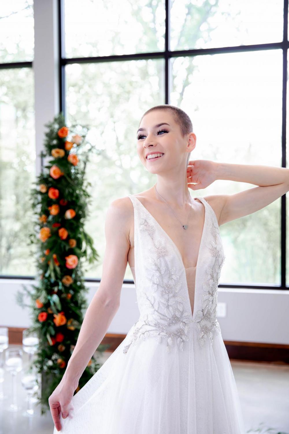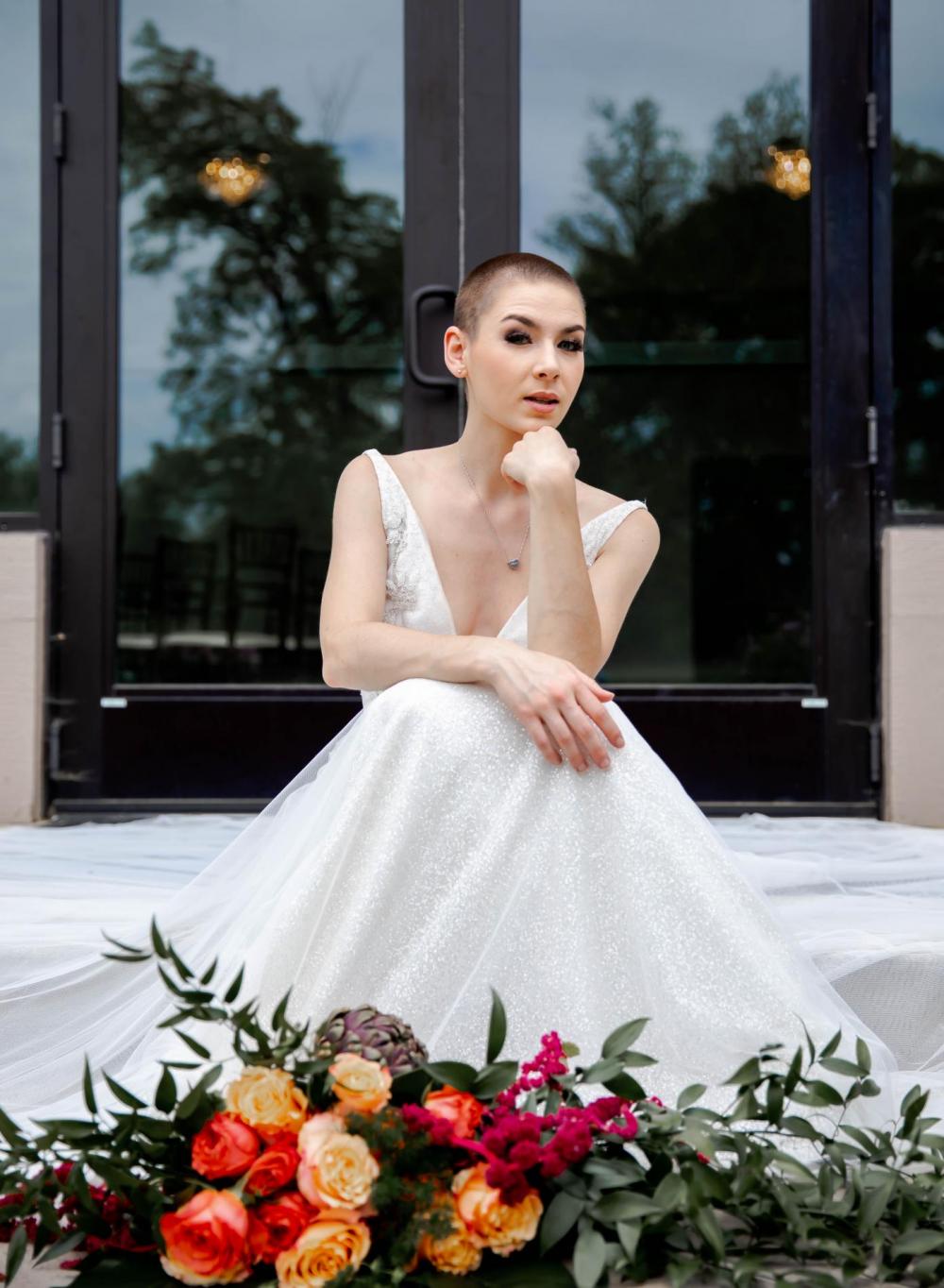 "My model (Audrey) recently cut her hair and instantly I thought to myself, man, this girl is BOLD," Tushona says. Since Audrey and all the other models were already so stunning, Tushona didn't want to overwhelm their natural beauty with too much makeup. However, she wanted the dresses and suits to show off their personalities. We think these gowns from BIANKA Bridal all look amazing!