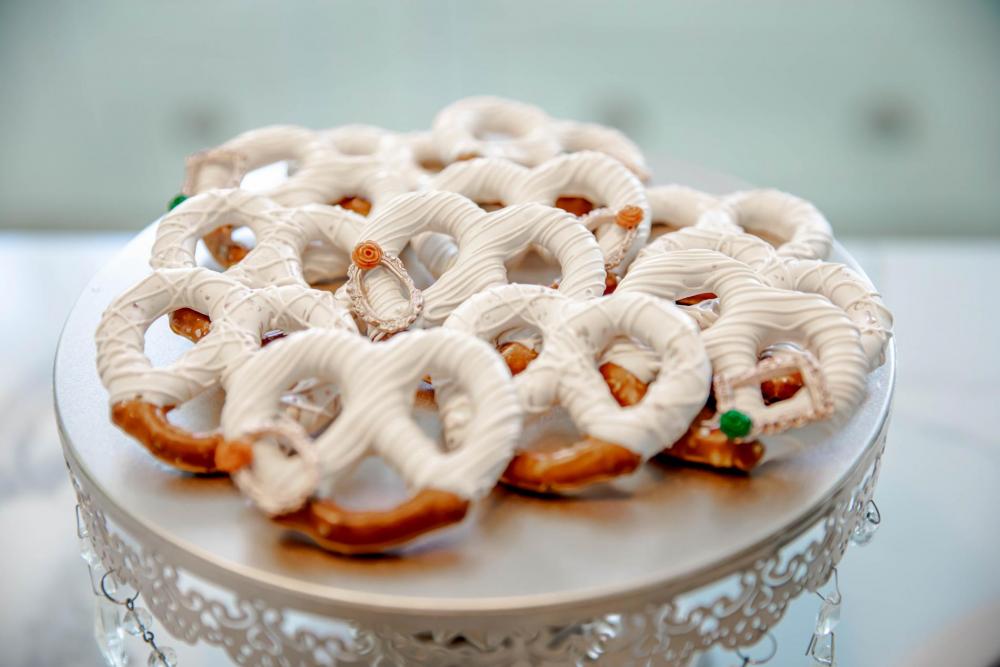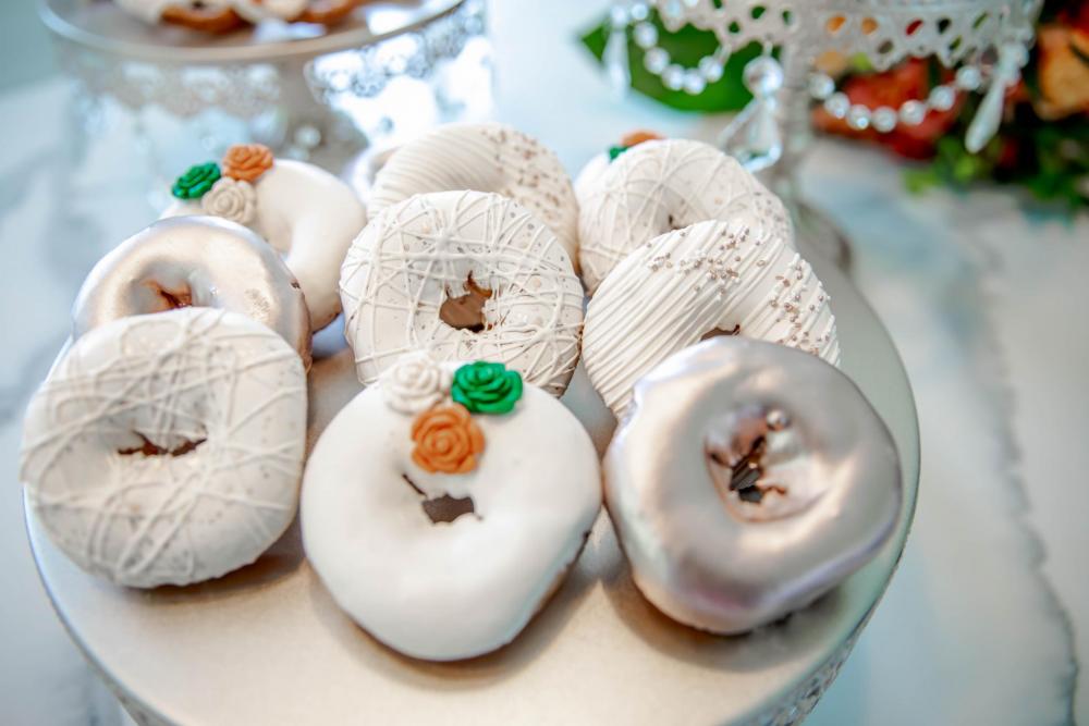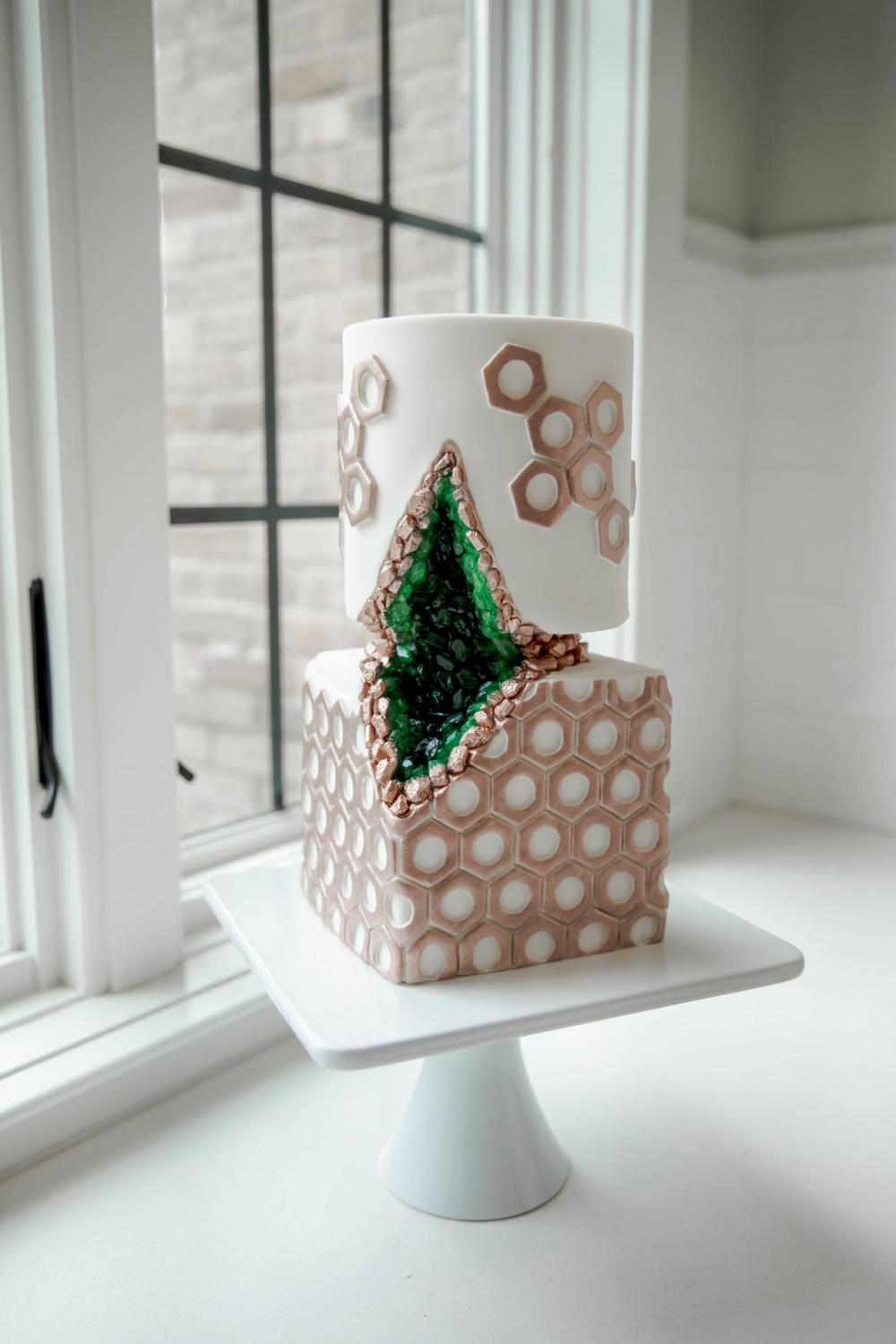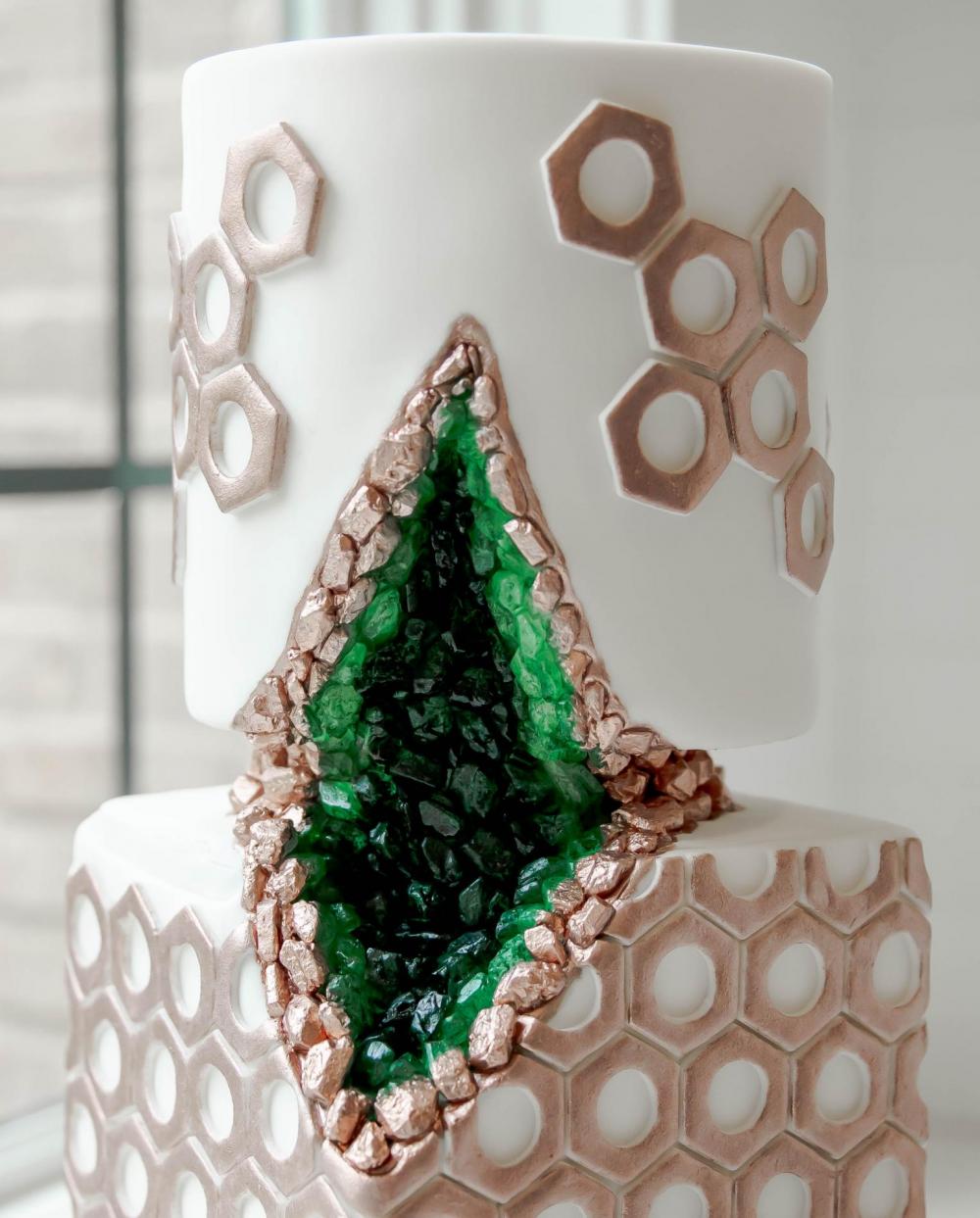 Speaking of talented vendors, look at this delicious cake created by Flour House Cakes! "The cake was a two-tier cake and the front had a green geo look, outlined with copper stones with small hexagon inspired decor surrounding the cake," Tushona explains. All the desserts go together wonderfully even though they were made by different bakers!
