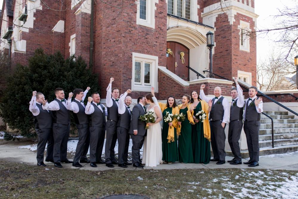 Mollie and Tyler crossed paths in their college campus’s ministry group. From then on, they’ve been inseparable! Keeping their love of their alma mater alive, Tyler proposed on Purdue’s campus underneath the bell tower. They exchanged those for wedding bells soon enough!