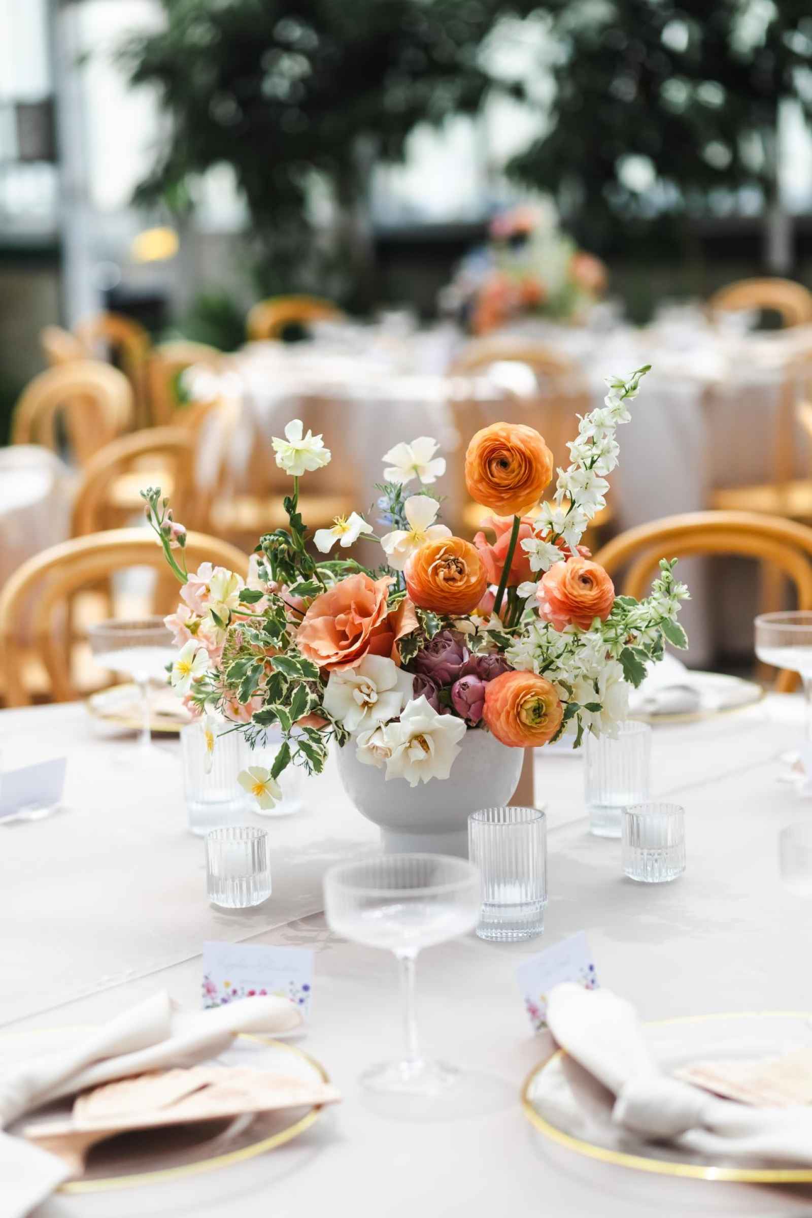 Kim and Michael’s wedding was a vibrant, romantic garden celebration brought to life by the venue’s natural charm, colorful blooms and the couple’s love of the outdoors. Drawn to the lush grounds, open spaces and the unique opportunity to host their reception in a greenhouse, they designed a day that felt whimsical, elegant and joyfully alive. One of the most unforgettable touches was their stunning floral arch (an early non-negotiable!) that All Grand Events + Floral transformed into a showstopping masterpiece. After framing their ceremony, it was moved behind their sweetheart table, becoming the breathtaking centerpiece of their reception and a detail Kim still adores every time she looks back at the photos.